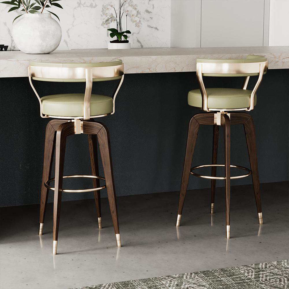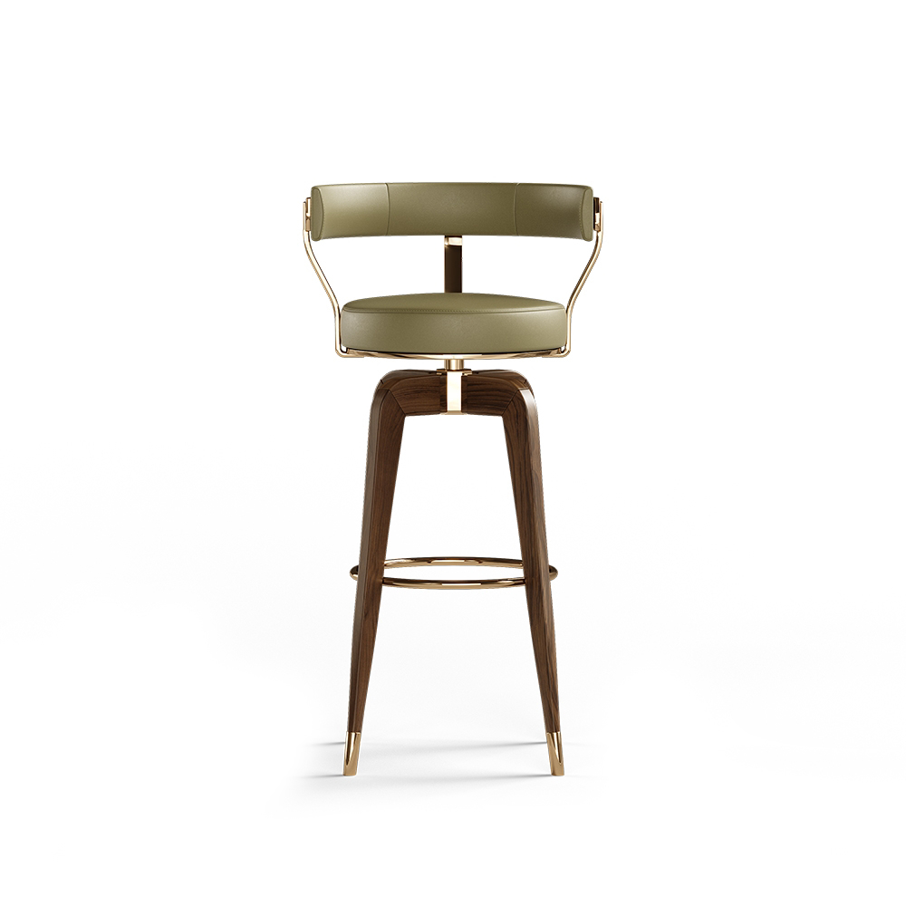 The Gilmore bar chair was designed to bring a touch of luxury to any bar. This vintage bar chair features elegant lacquered legs, adorned with brass details, providing the vintage glamour that any modern mid-century bar seeks to have.