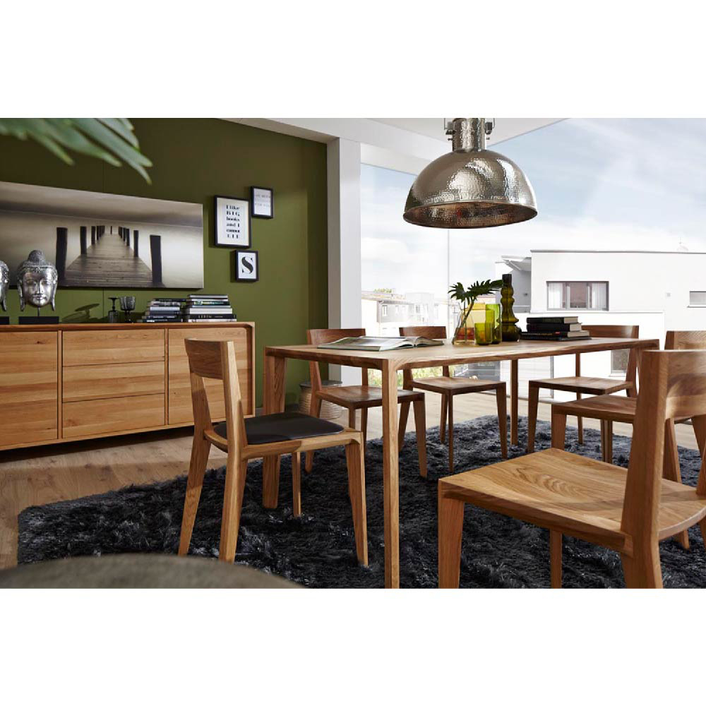 The chair parts are made of solid wood pieces of the same length but different widths, with precisely crafted joints on CNC machines. Each piece is chosen through careful matching of wood colors and structures. The upholstered seats are covered with HR foam and upholstery for superior comfort. Certain chair collections are produced using a special wood bending technology. The technical parameters of hand-assembled chairs comply with standard requirements. Final sanding is done manually with fine-grained sandpaper, and various types of finishes enable a wide selection of the chair’s final appearance.