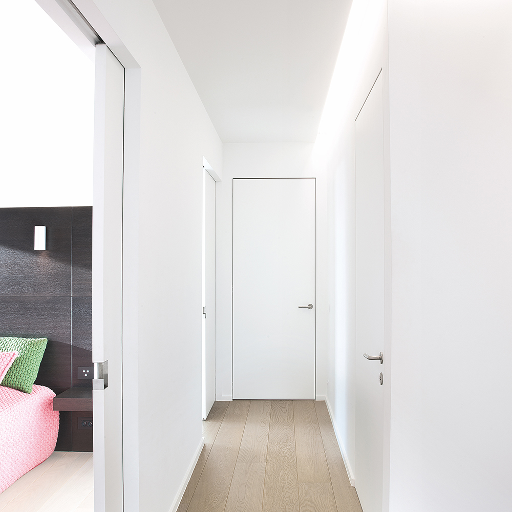 Designed for modern construction standards, the Filo Muro Individuale flush-with-wall door provides architects, builders, and designers with a flexible paint-ready hidden frame door solution that blends effortlessly into any interior environment while maintaining the elegance of minimalist architectural design.