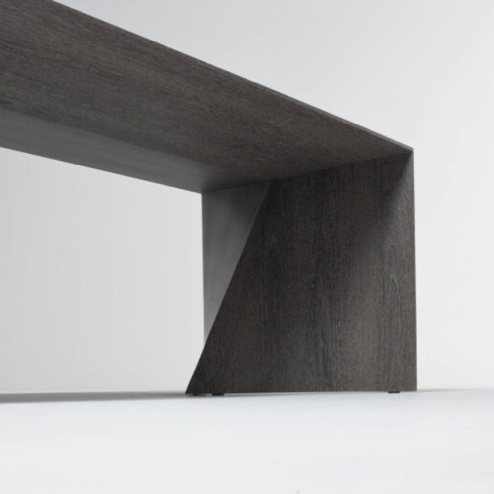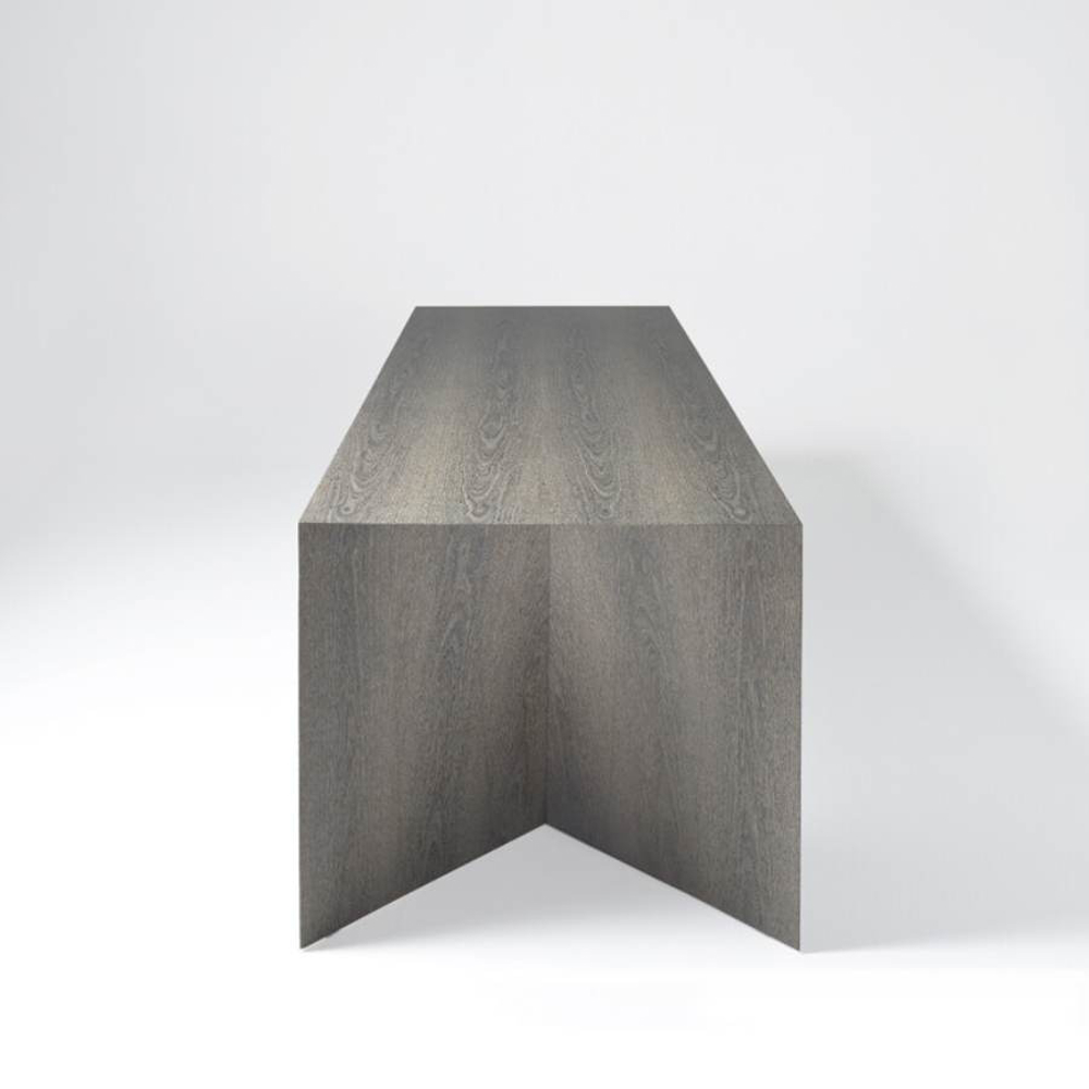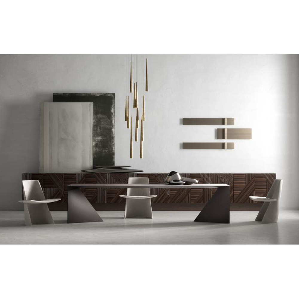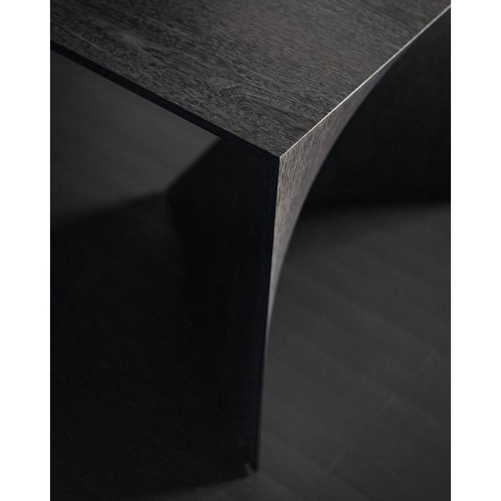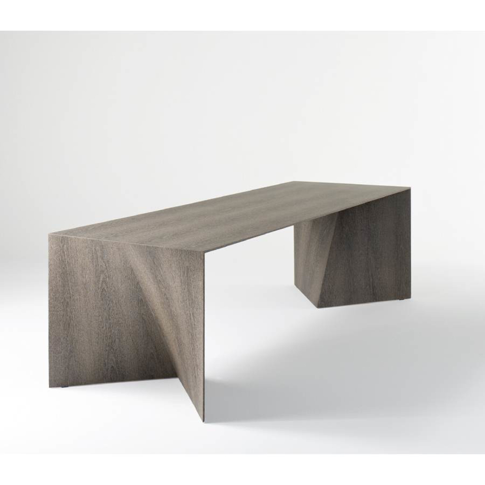Table made of plywood and surface finish in different essences. The base, in the shape of a hyperbole, develops on a thin profile which, changing along the perimeter, becomes flat. This project was born from the perfect balance between Emmemobili's artisanal savoir-faire and the latest technology in woodworking. Minimal in design but not in content, this table is the perfect passe-partout for destination and use, expressing elegance in the simplicity of its design.