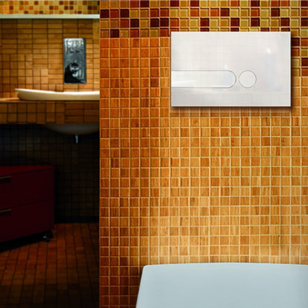 An ABS flush plate for in-wall cisterns that allows to mix and match colours of the buttons.