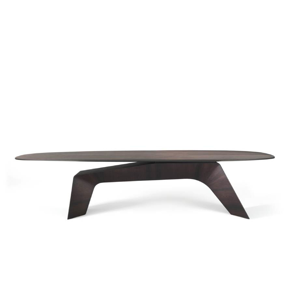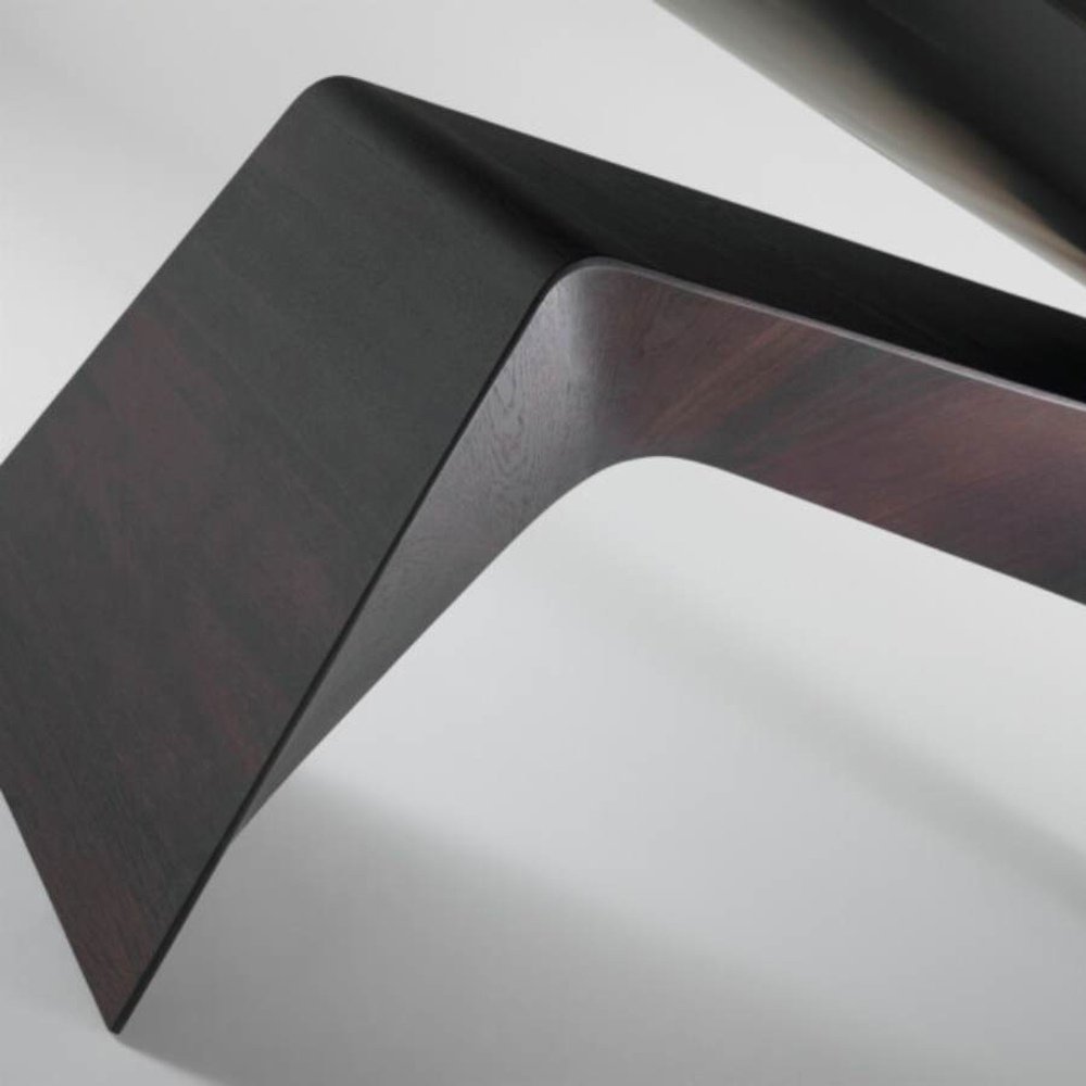 Kintai is a sculptural table with a strong visual impact, characterized by a game of balance between the elements that make it up. A true domestic architecture that evokes the oriental world and the theme of Zen balance. A balance that is not only static but also formal. The massive, solid, imposing base is contrasted with a thin, elegant, floating top. Still and moving at the same time, Kintai is an expression of Zen balance.