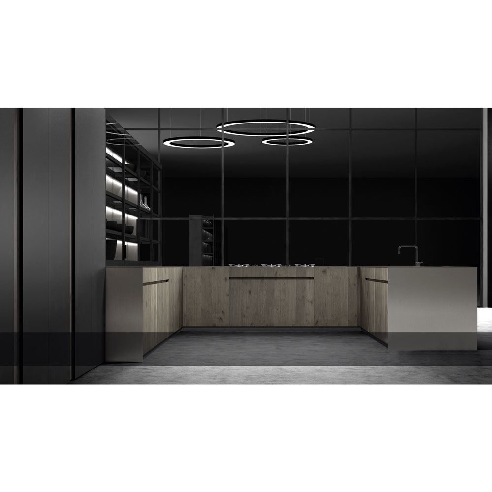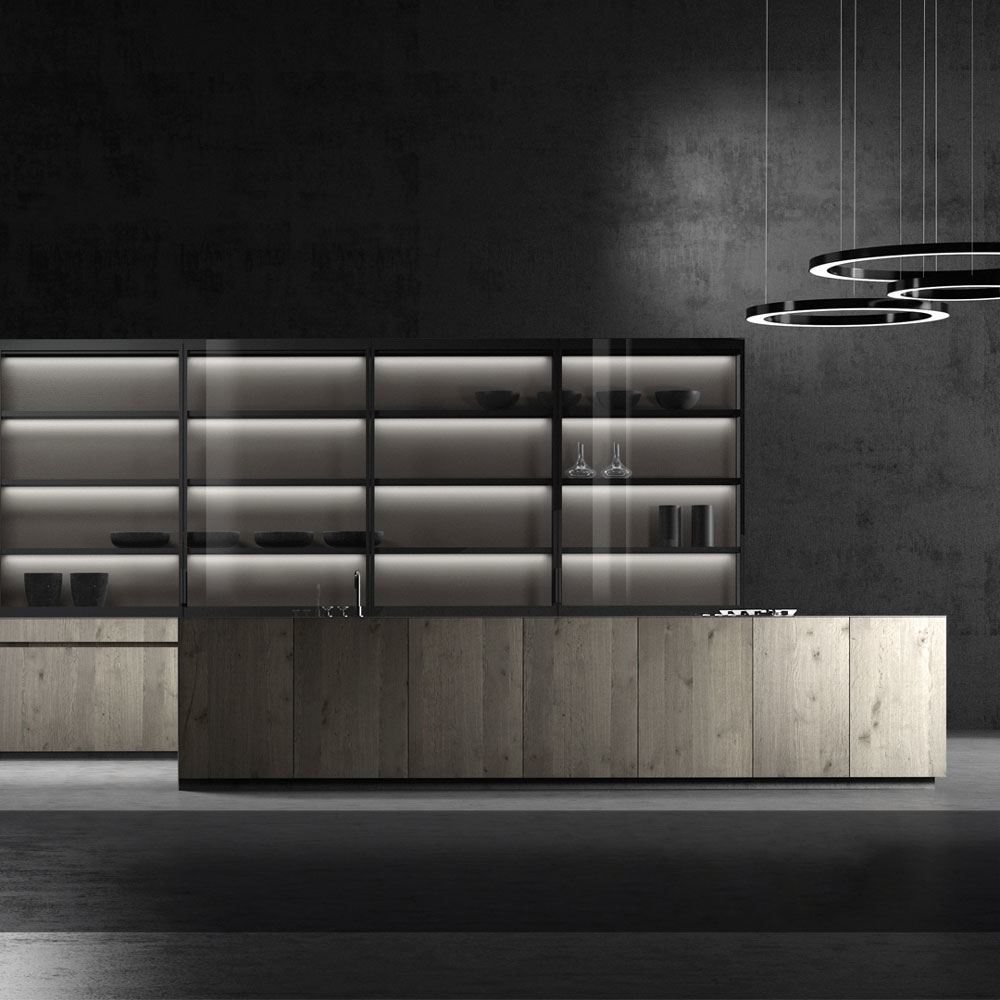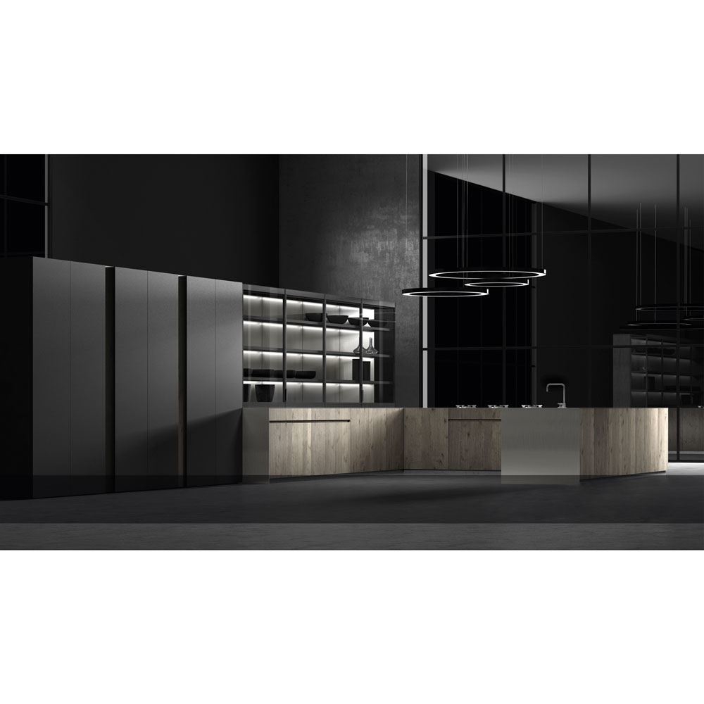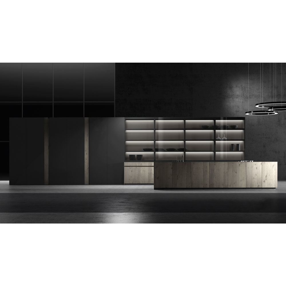 This new kitchen model proposes straight and minimalist lines, highlighting the warmth of the wood and the touch of the textured lacquer. These materials are combined to create both an urban and contemporary style.