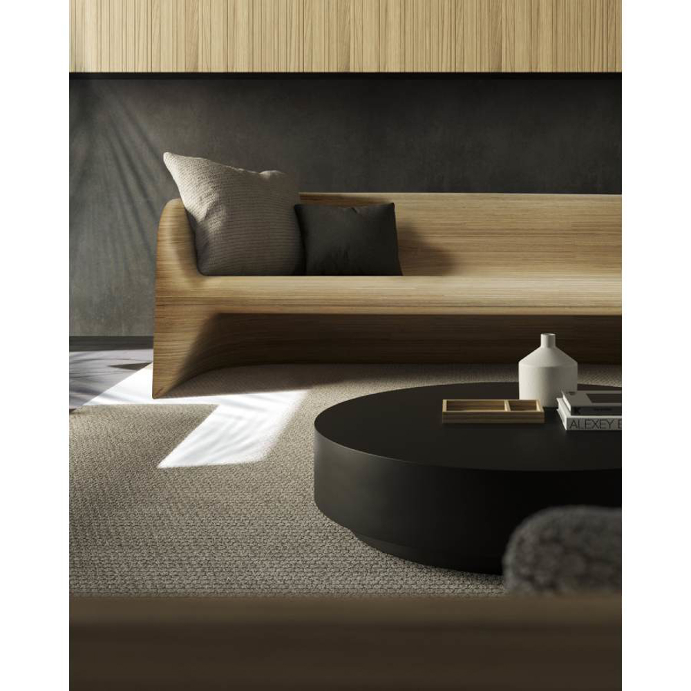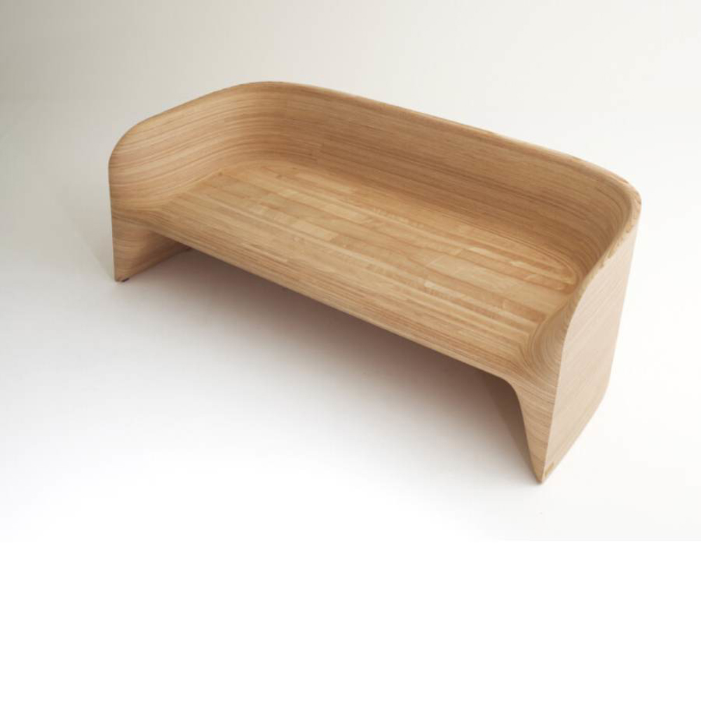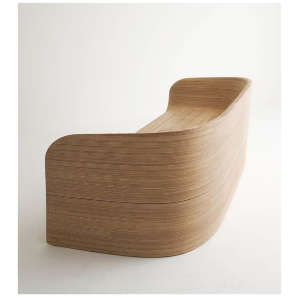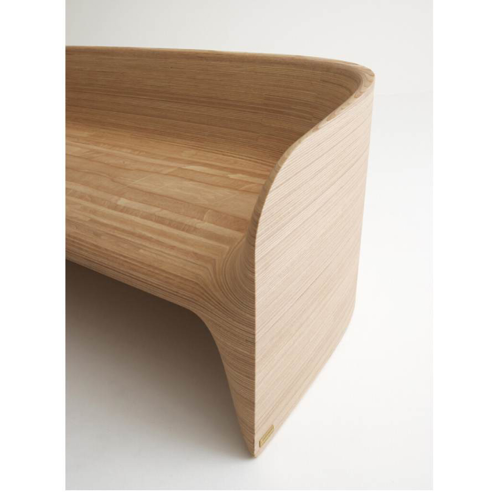 Monobloc sofa in solid plywood, shaped in CNC, finished and sanded by hand. The marine plywood version is also suitable for use in protected/covered outdoor areas.
