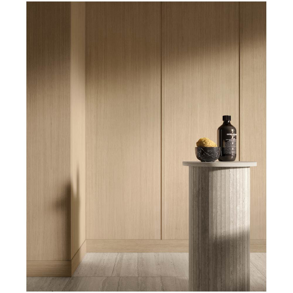 Expressing the timeless beauty of wood with supreme simplicity, Essence transforms rooms into places of pure elegance. Each slab embodies the essence of nature and envelops interiors in a warm embrace of comfort and sophistication.