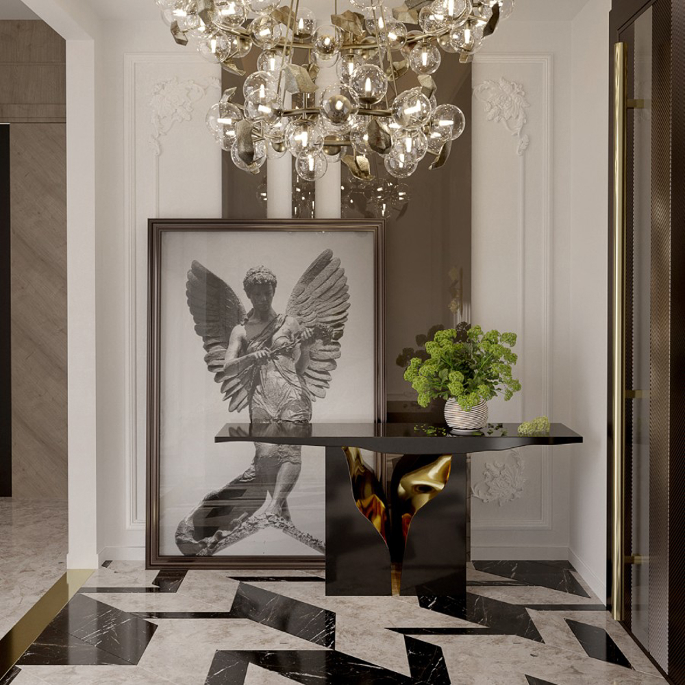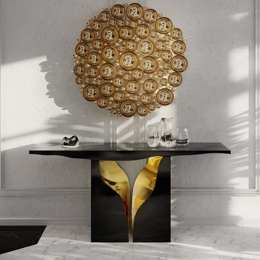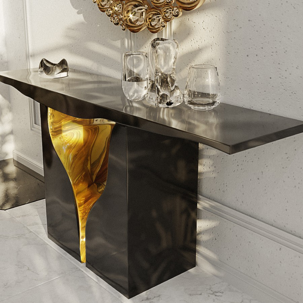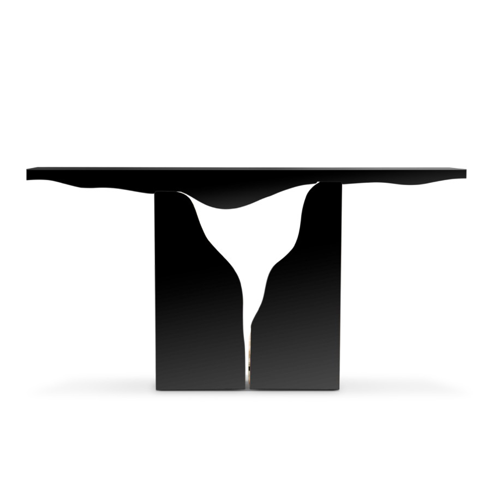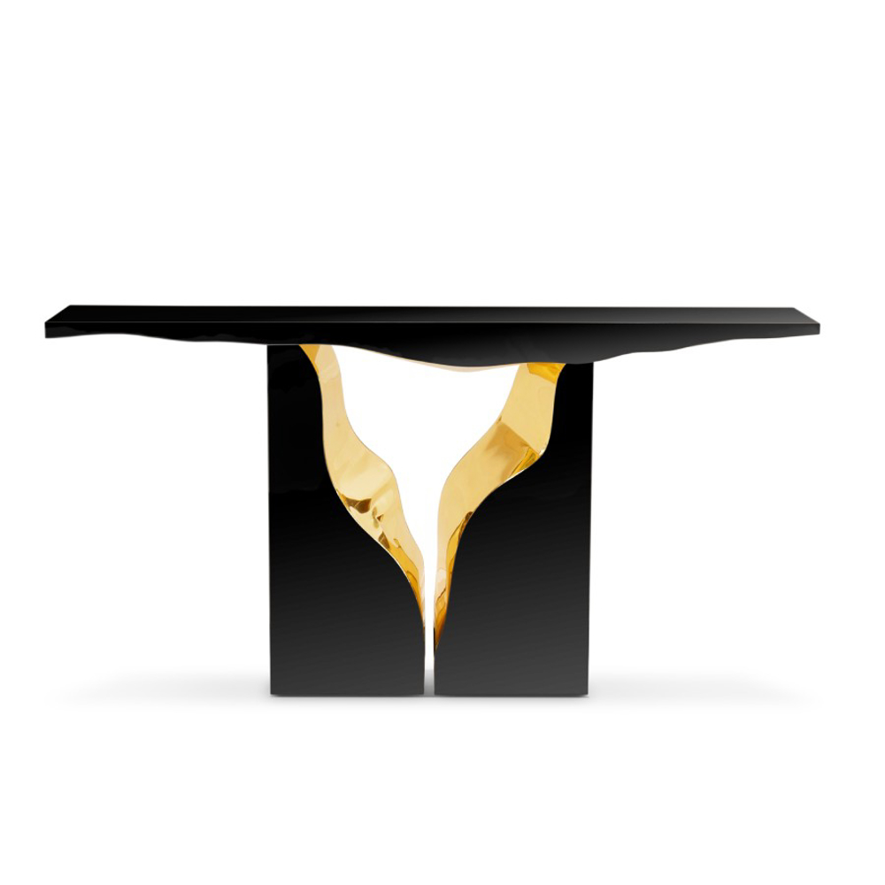 Black Lacquered Veneer exterior with hammered polished interior details.