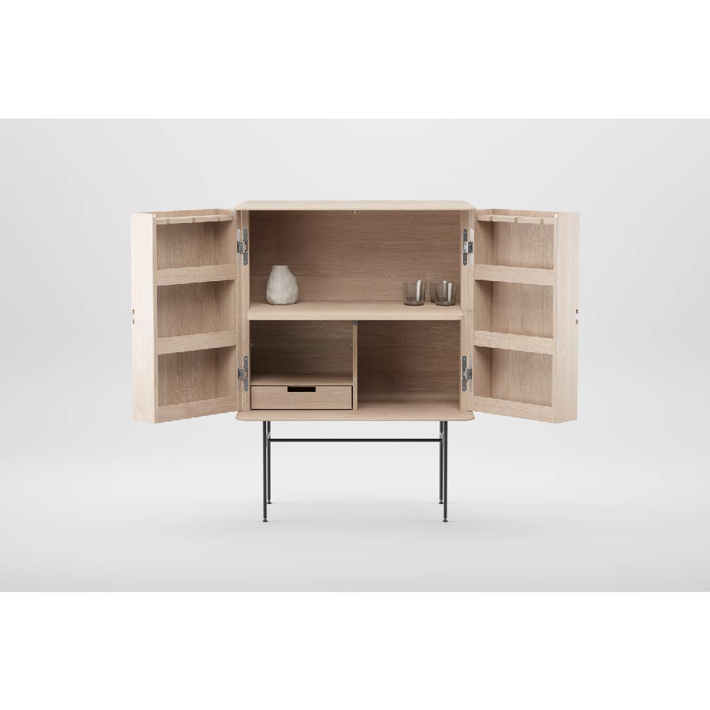 The solid wood construction highlights the natural beauty of the material, with carefully finished surfaces that enhance the grain and texture. The interior is thoughtfully organised, featuring compartments, a small drawer, and a glass shelf to accommodate bar essentials. Used as a statement piece or a practical storage solution, the Leno bar storage is a perfect example of Artisan’s dedication to quality and design.