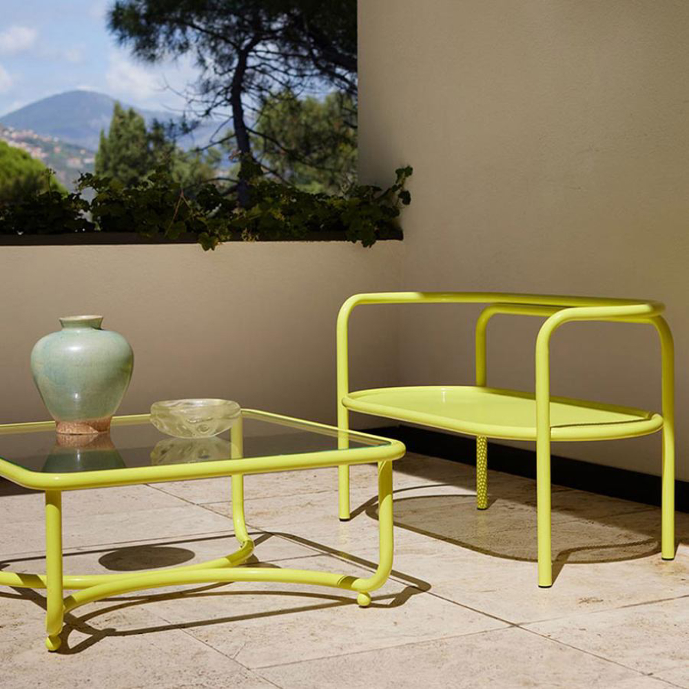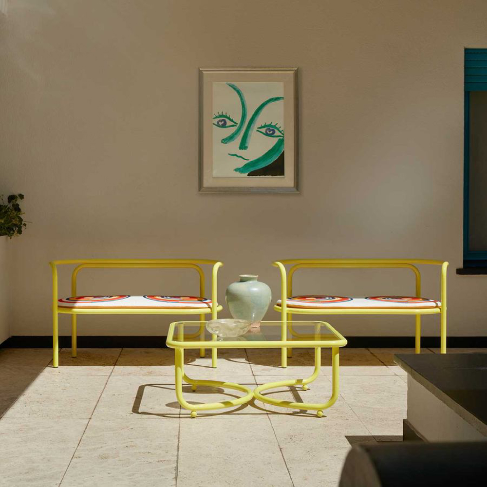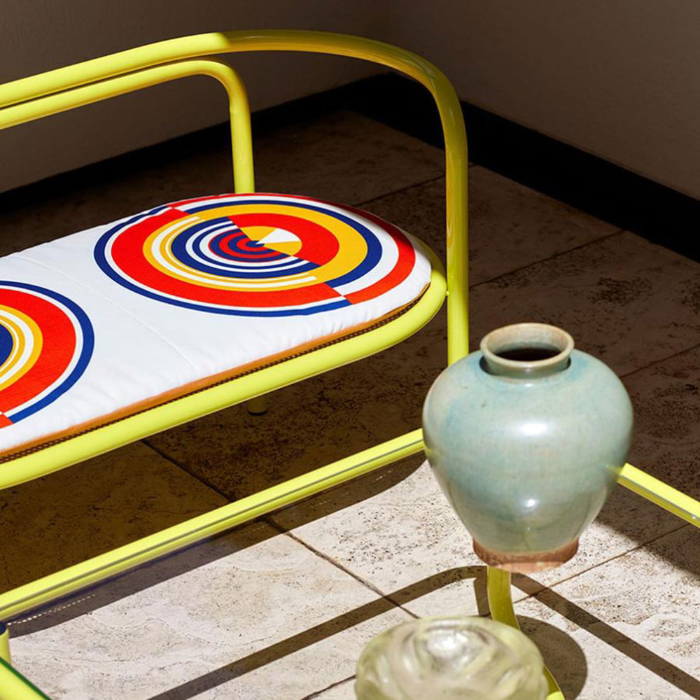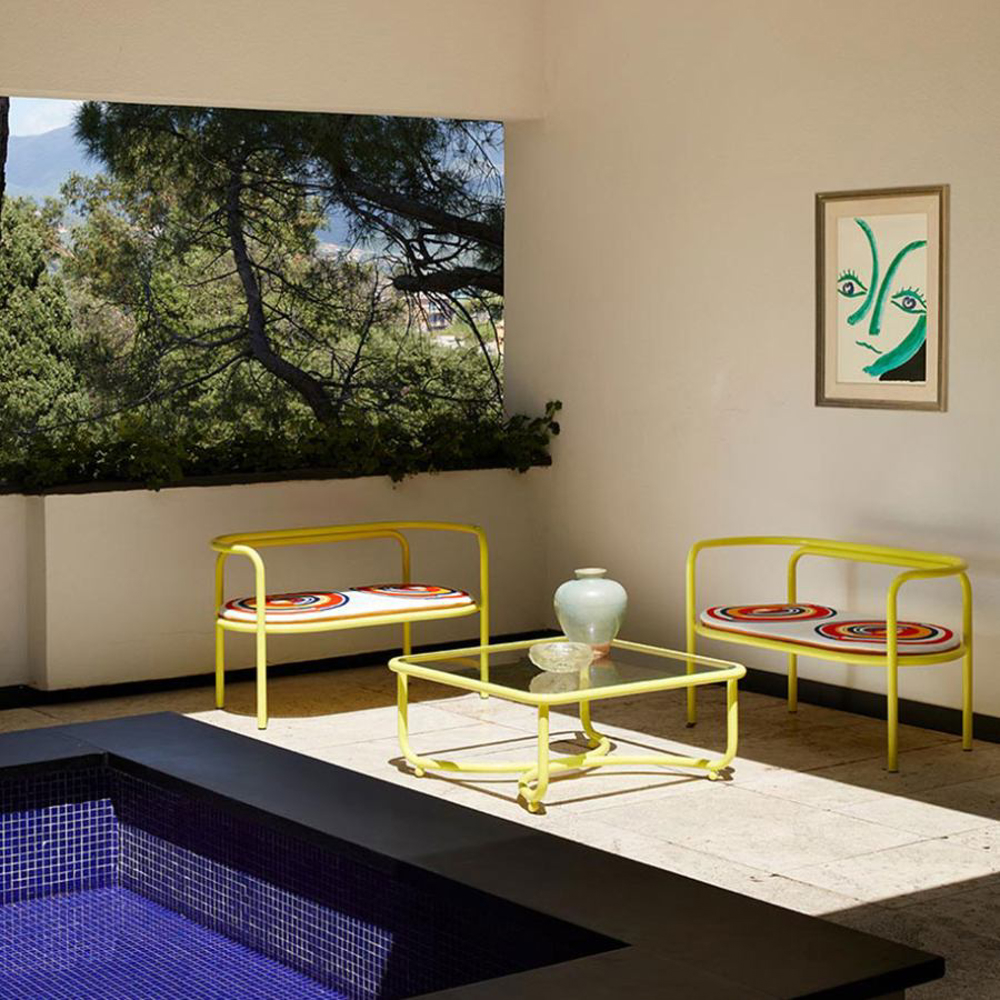 Made of steel and fabrics with original and unpublished patterns, Locus Solus is the re-edition of a collection designed by Gae Aulenti in 1964.