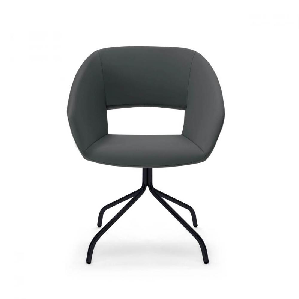 Look Armchair with an open, wide shape, available with metal or wooden bases. An armchair with an open and welcoming design, featuring clean and wide lines.