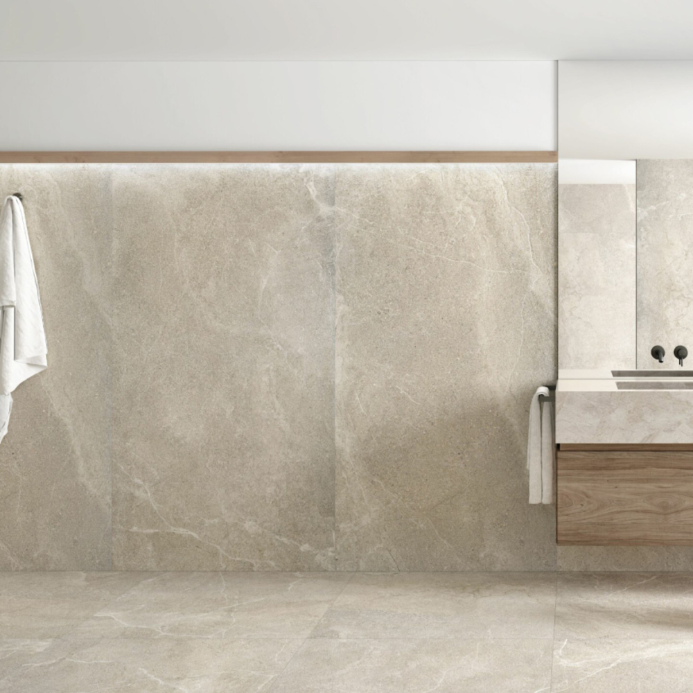 This highly-prized stone, only found in the little municipality of Villa Collemandina, is traditionally used on floors or to dress up walls in decorative style, thanks to its white veins. Peronda has taken advantage of cutting-edge tile manufacturing technology to reproduce it with amazing realism. Thanks to the use of Shaped Tech technology, the digitally printed design can be synchronized with the relief texture, recreating this superb Italian stone to perfection. Available in four colours in 1/4"-thick tiles in a 40"x40" or 40"x71" format, Lucca 4D is perfect for more modern-looking settings, thanks to the spacious feel guaranteed by its large formats and its perfectly matched wall and floor models.