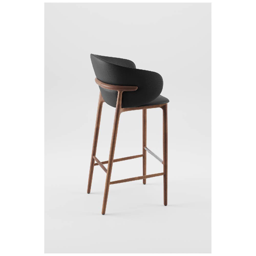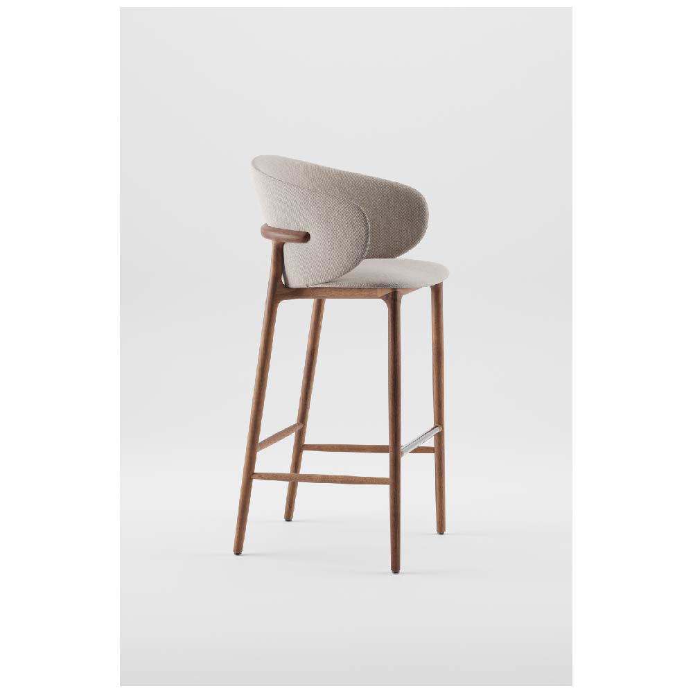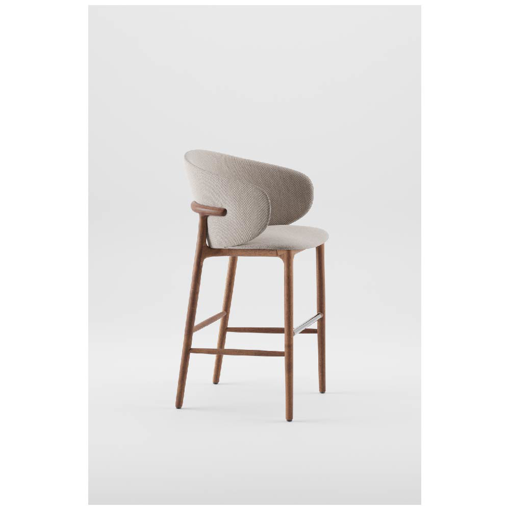 The bar chair parts are made of solid wood pieces of the same length but different widths, with precisely crafted joints on CNC machines. Each piece is chosen through careful matching of wood colors and structures. The upholstered seats are covered with HR foam and upholstery for superior comfort. Certain chair collections are produced using a special wood bending technology. The technical parameters of hand-assembled chairs comply with standard requirements. Final sanding is done manually with fine-grained sandpaper, and various types of finishes enable a wide selection of the chair’s final appearance.