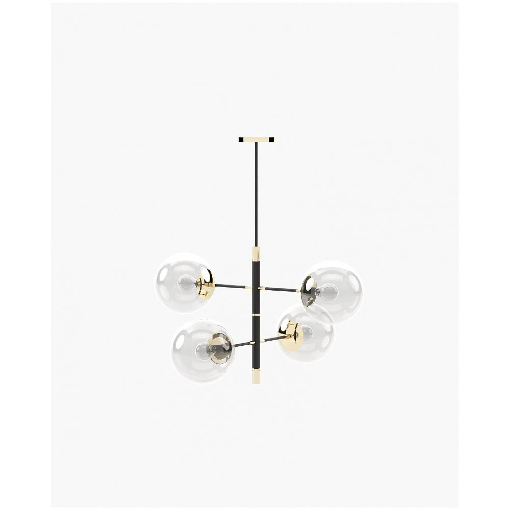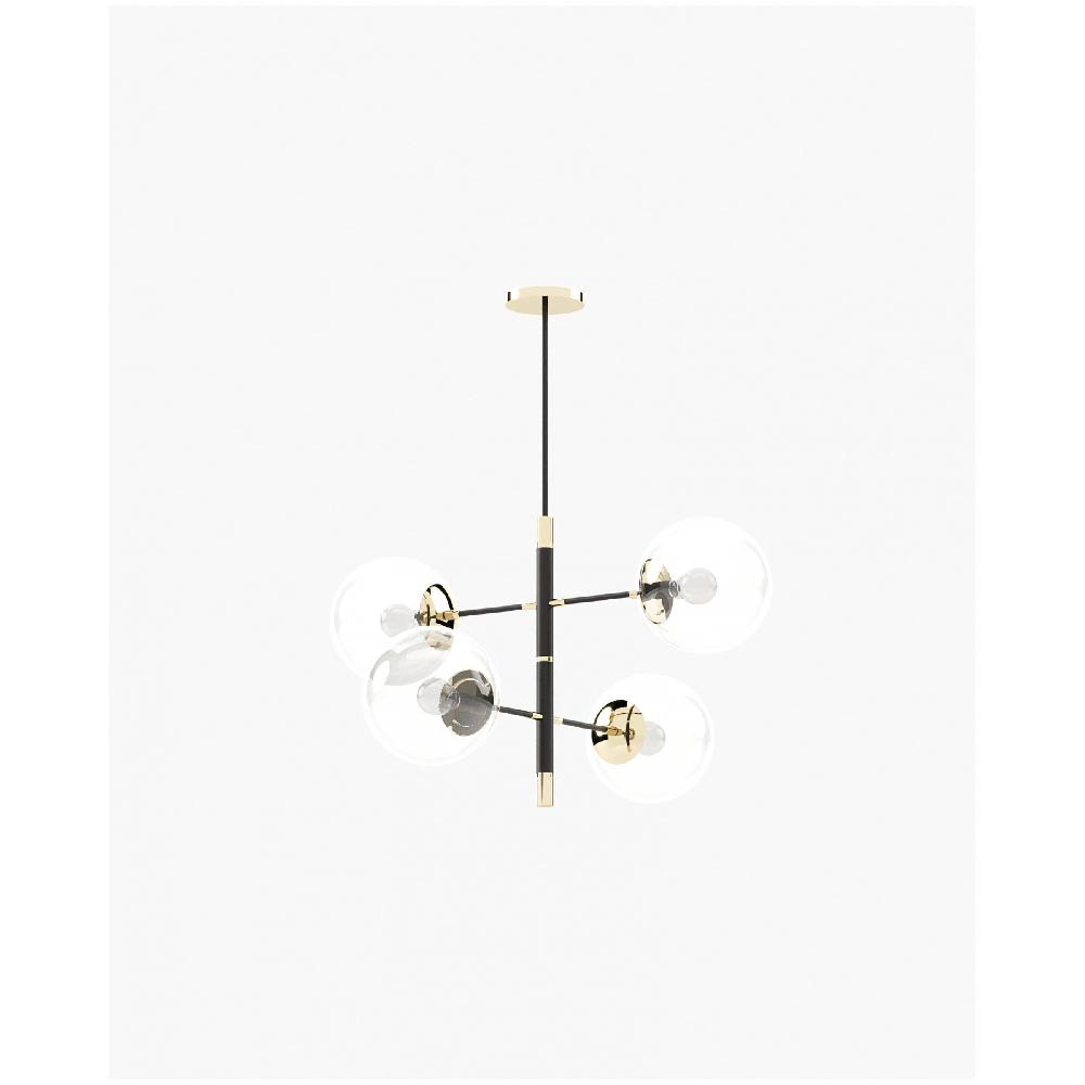 The Meredith chandelier is a glamorous handmade piece with a metallic structure and details. It features two levels of lighting, each with two bulbs pointing in different directions, providing ample light for your dining room.