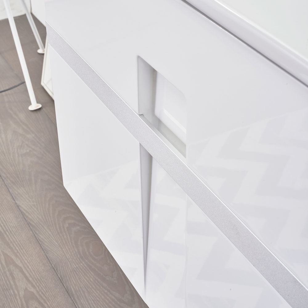 - Glossy White Lacquer Finish and Rubber Countertop