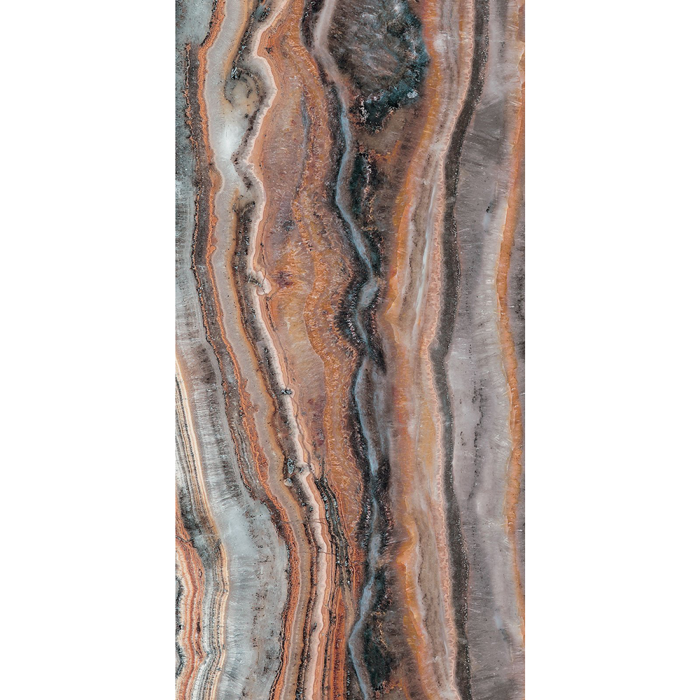 Resinated porcelain stoneware is a precious slab manufactured onto printed support covered with a special resin that exalts the depth and brilliance of surface graphics.