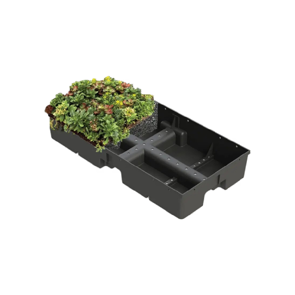 The vegetative trays are placed on the roof in configured designs, and often require less expertise for installation. The optimal balance for weight restrictions, low-cost, stormwater retention, ease of installation and extensive plant natural habitat. All in one complete system.