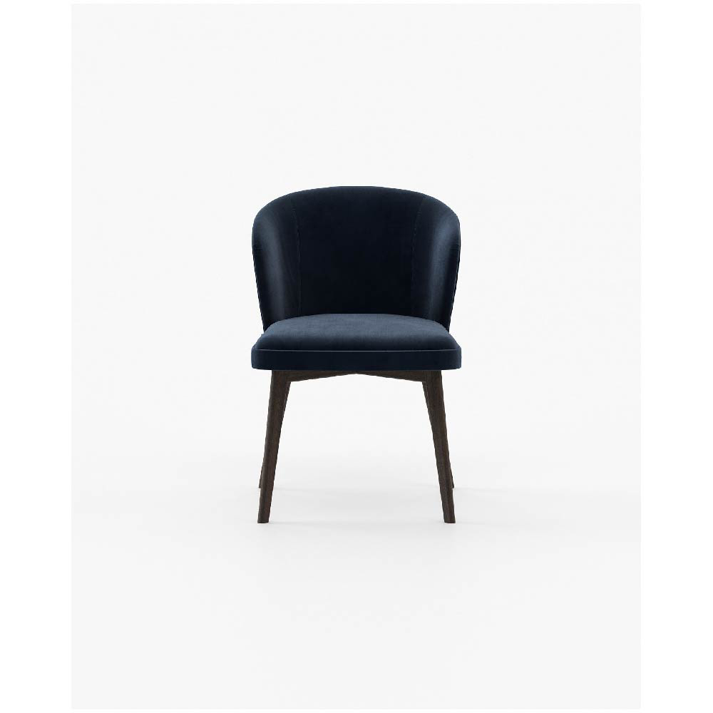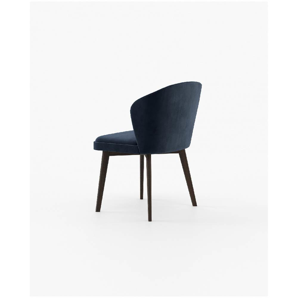 Nelly chair will be the focal point of any dining room set. From Nelly collection, this vintage dining chair presents a deep round convex back and four wood legs. Upholstered in two different fabrics, Nelly is a soulful piece for sumptuous dining rooms.