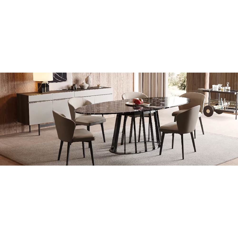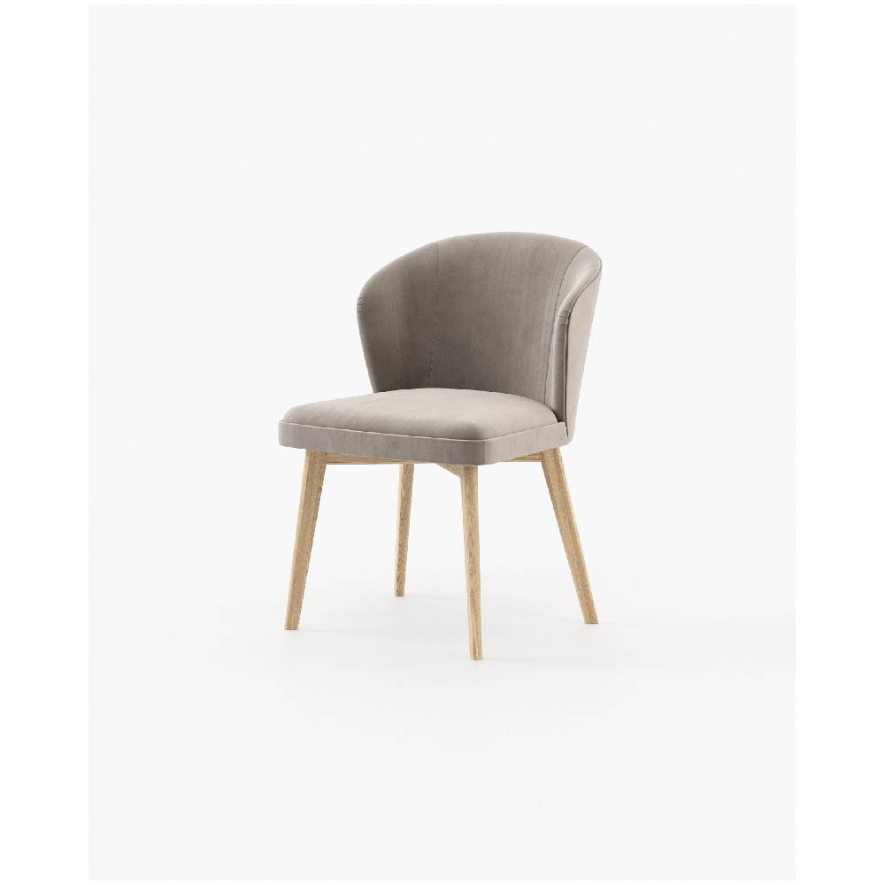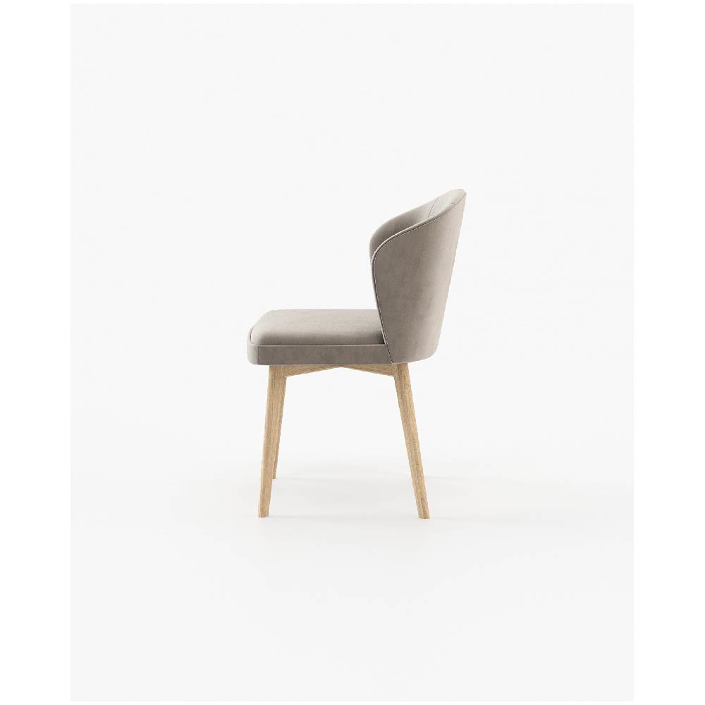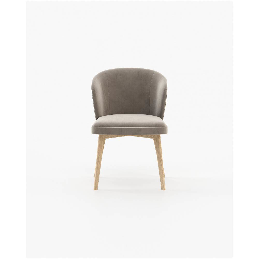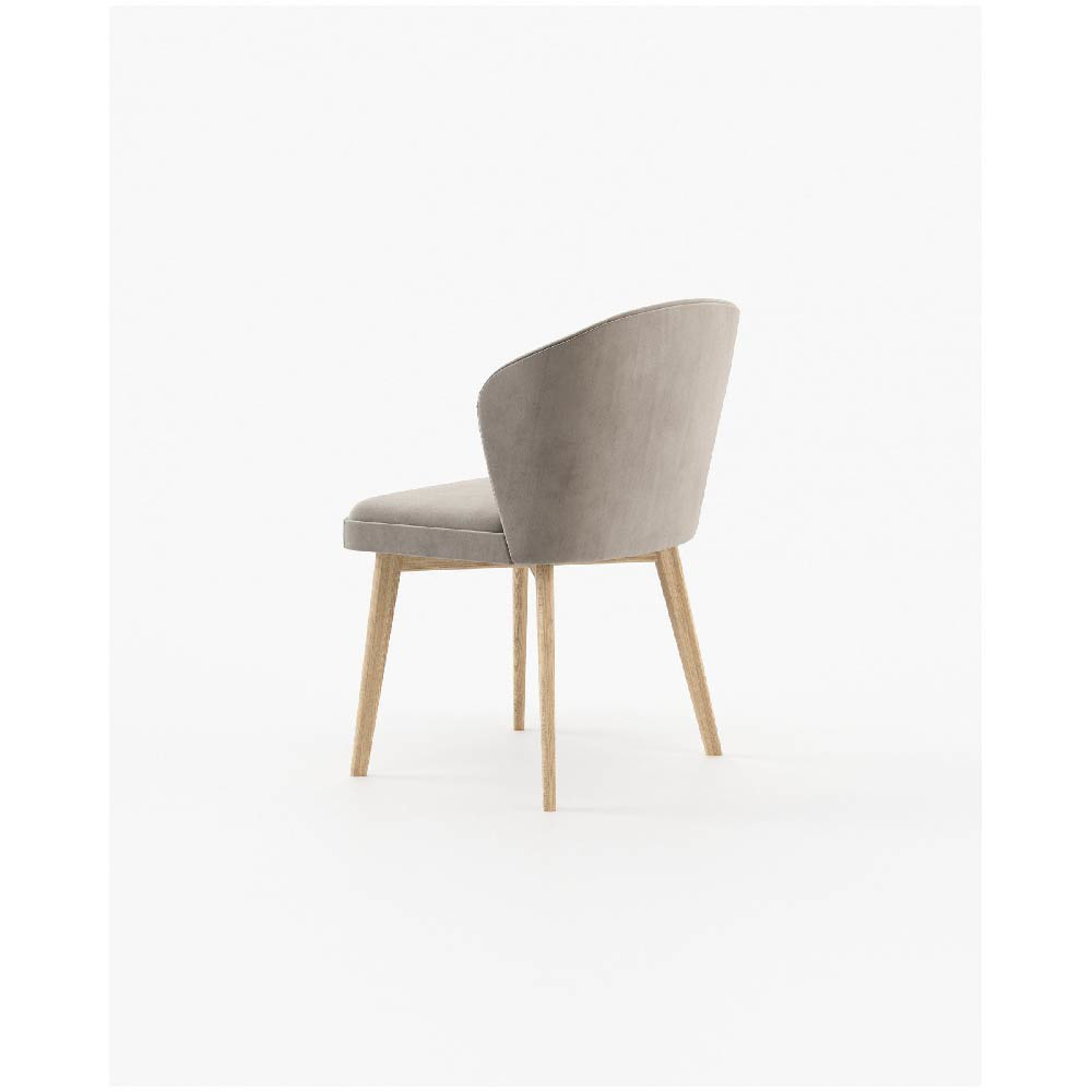 Nelly chair will be the focal point of any dining room set. From Nelly collection, this vintage dining chair presents a deep round convex back and four wood legs. Upholstered in two different fabrics, Nelly is a soulful piece for sumptuous dining rooms.