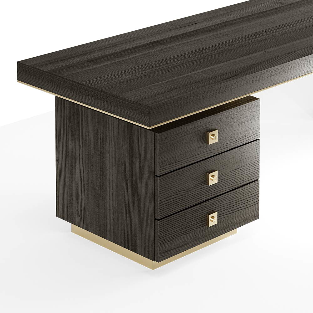 The Nouvel desk in an ode to minimalism. There is simplicity in the form, materials, colors, and the little details turn it into the perfect desk for the admirers of modern spaces. Although its strong presence, Nouvel allows the space to breathe through its calm and warm design, enhancing the beauty of the luxury details.