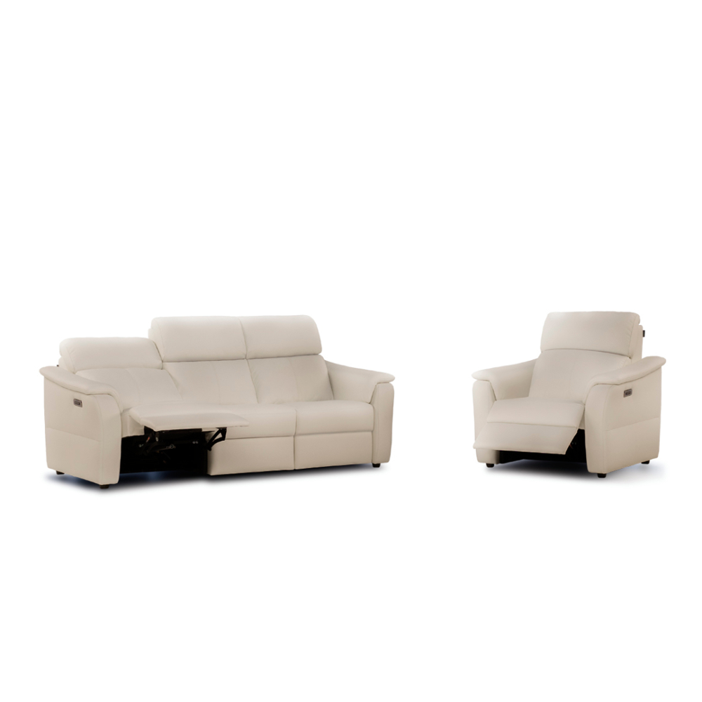 Mechanisms: Versions ‘ELECTRIC RECLINER’ available with a metal mechanism and electrically motorized movement of the backrest and seat, operated via control panel (PUL M3). Versions ‘ELECTRIC RECLINER WITH ELECTRIC HEADREST’ available with a metal mechanism and electrically motorized movement of the backrest, seat, and headrest, operated via the control panel (PUL M4). Versions ‘ELECTRIC RECLINER COMFORT’ available with a metal mechanism and electrically motorized movement of the backrest, seat, headrest, and lumbar support, operated via the control panel (PUL M5). The depth of the open recliner is 61".