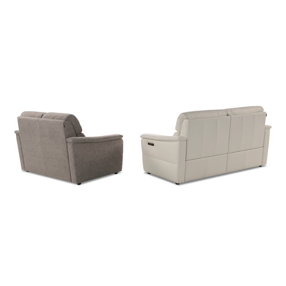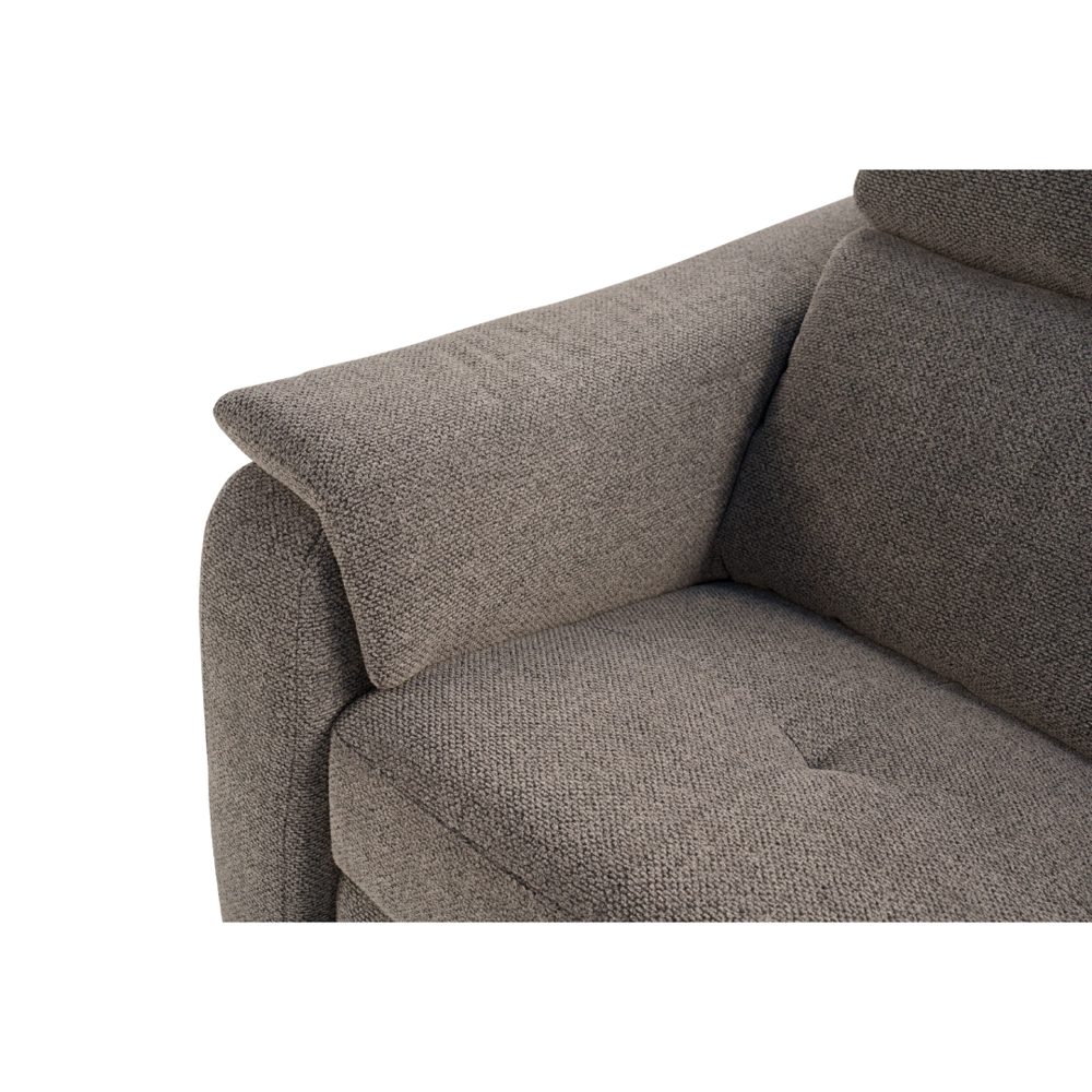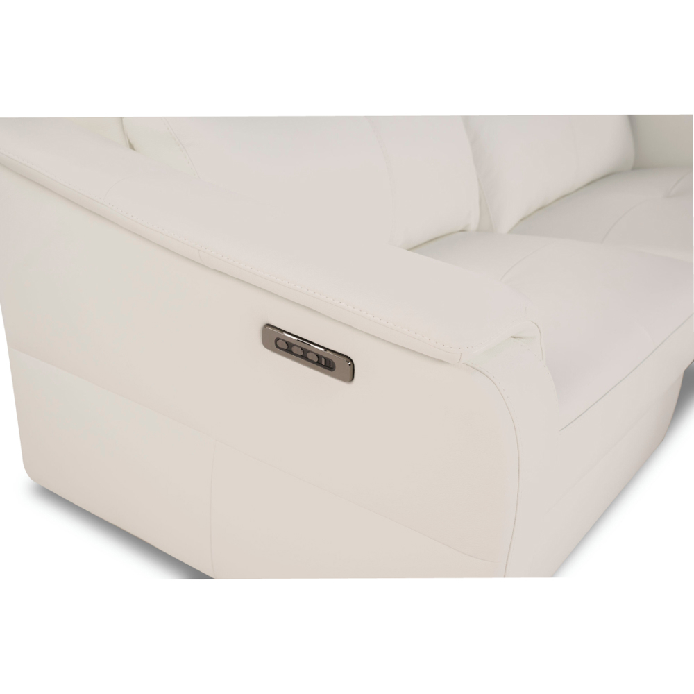 Components: an integrated push-button control, available on all versions with an electric mechanism and located on the side of the armrest, allows for easy adjustment of the backrest, seat, lumbar support, or headrest to find the most comfortable position. The sofa is equipped with a USB-C port for connecting and charging electronic devices. The reset button (not available on ELECTRIC RECLINER versions) simplifies returning to the initial position.