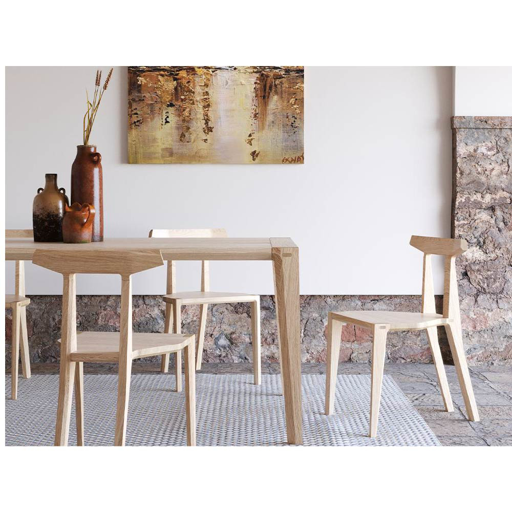 Whether placed in a dining area, a creative workspace, or a refined hospitality setting, the Orca chair stands out without overpowering its surroundings. Its solid oak or walnut frame, combined with the option of a padded seat, offers a customizable balance between natural texture and comfort.