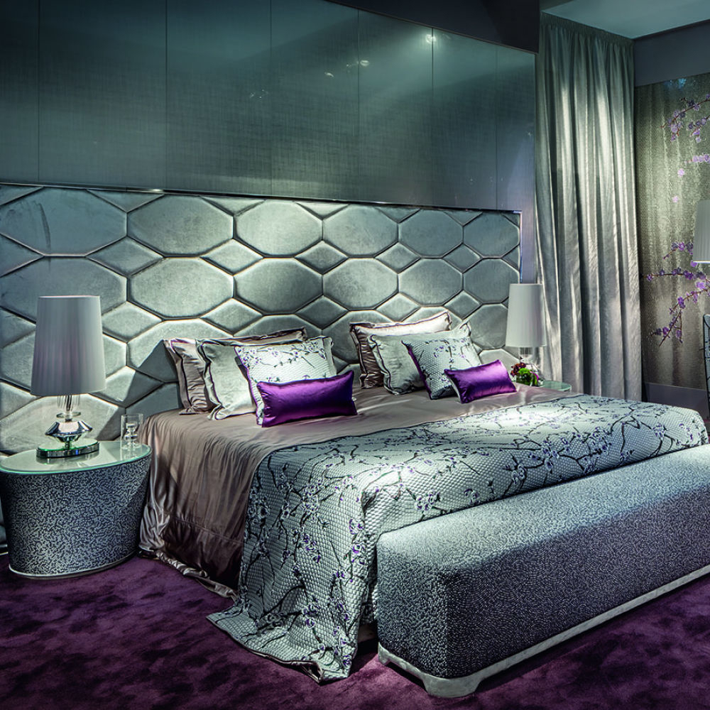 A romantic bed characterized by sweet and rounded lines both in the structure and in the quilted design of the headboard, that can be covered in leather and fabrics from the Tessere collection.