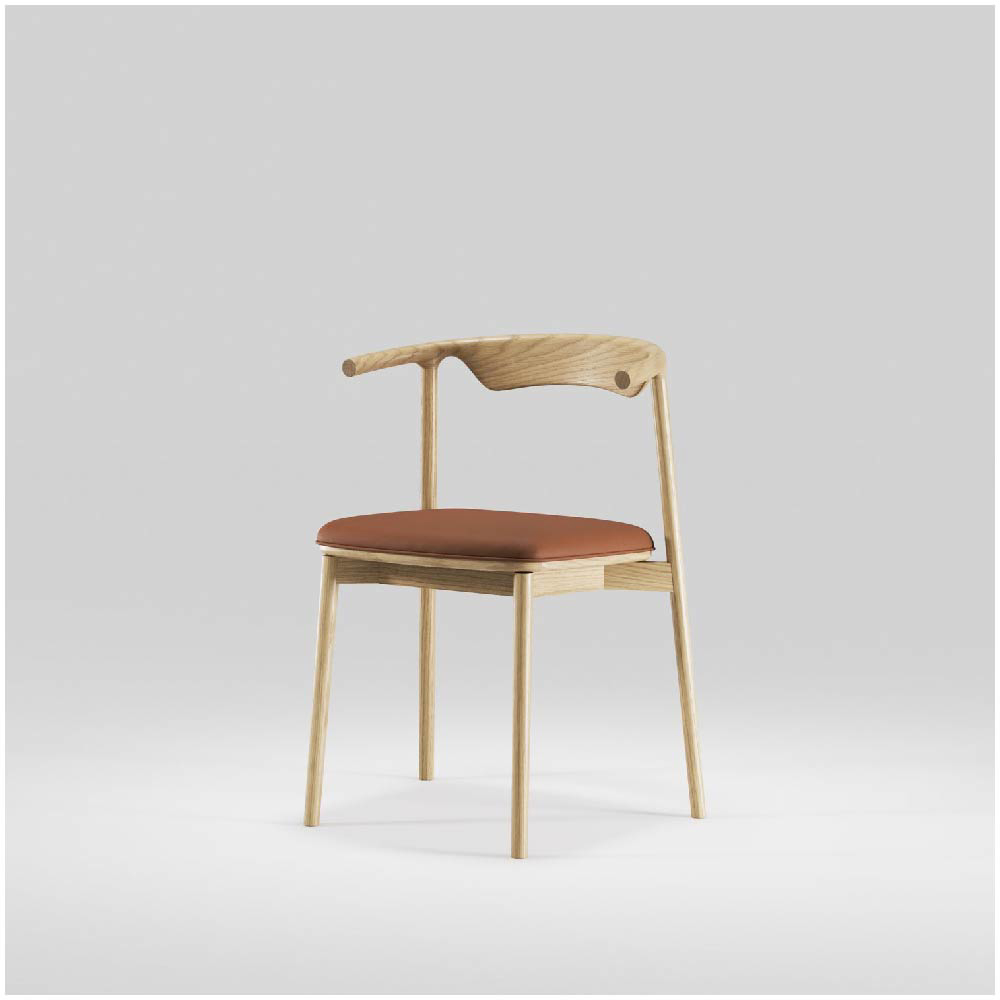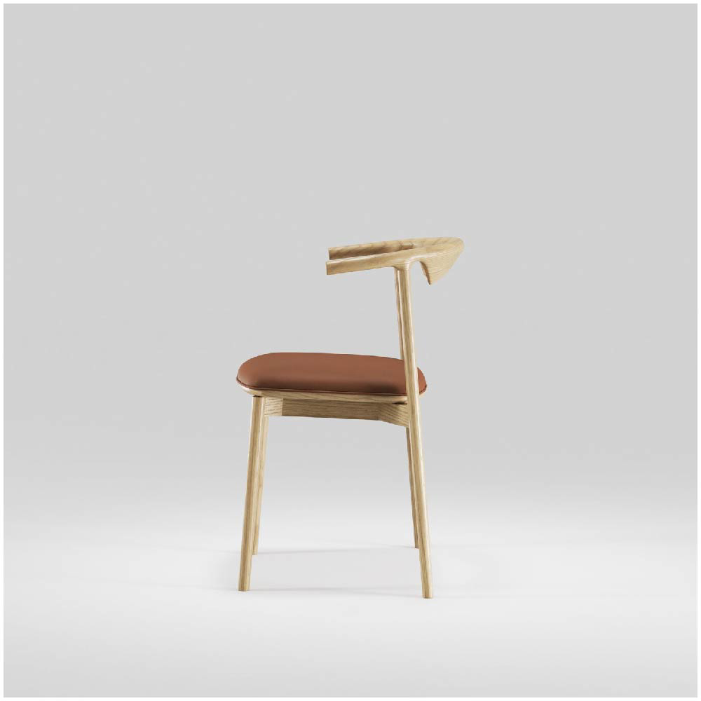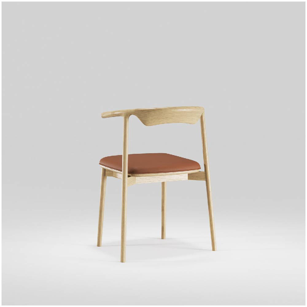 The chair's enveloping elbow rest enhances the dining experience, offering a relaxed and supportive feel that invites long, comfortable meals. The design strikes a balance between sleek, clean lines and the organic beauty of wood, making it an appealing addition to both contemporary and traditional interiors.