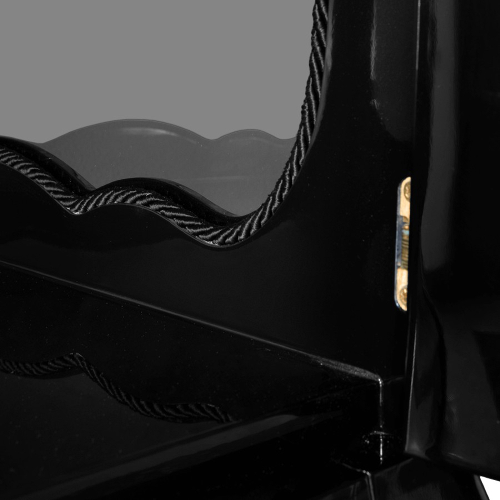Dry cloth for lacquered part and glass cleaner for the glass part.
