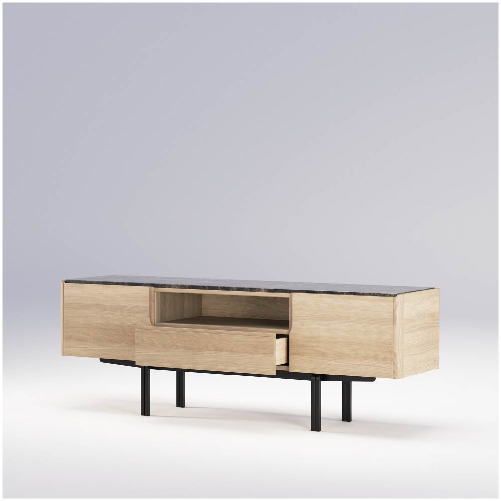 The designers of Panamá media unit envisioned a warm and understated concept, focusing on pure forms and honest materials that would convey both simplicity and sophistication. The overall design embraces subtle elegance, where each element has been thoughtfully considered to create a harmonious balance between visual lightness and structural integrity.