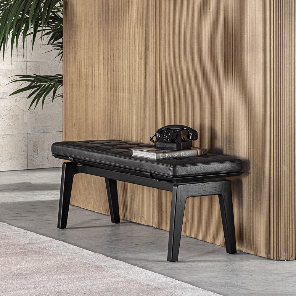 The charm of the bench meets the essential MC style plus the upholstery smoothness. Whether Canaletto walnut or black stained ash, Parioli graceful and slender structure becomes sweeter thanks to the soft cushion that crowns and outlines its seat. Whose fantasy is left to yours and the mood of your indoor.