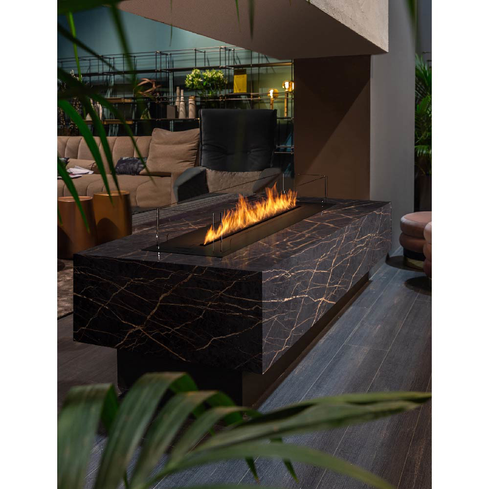 Linear fireplace with advanced BEV (Burning Ethanol Vapours) Technology