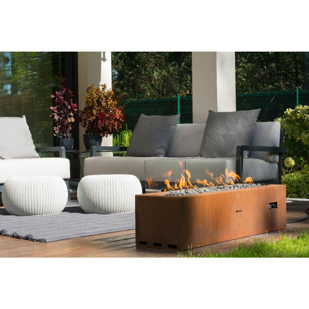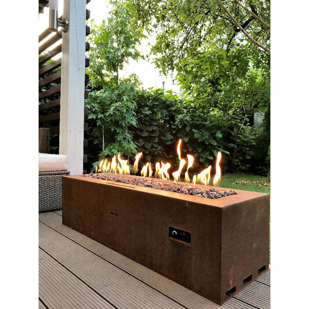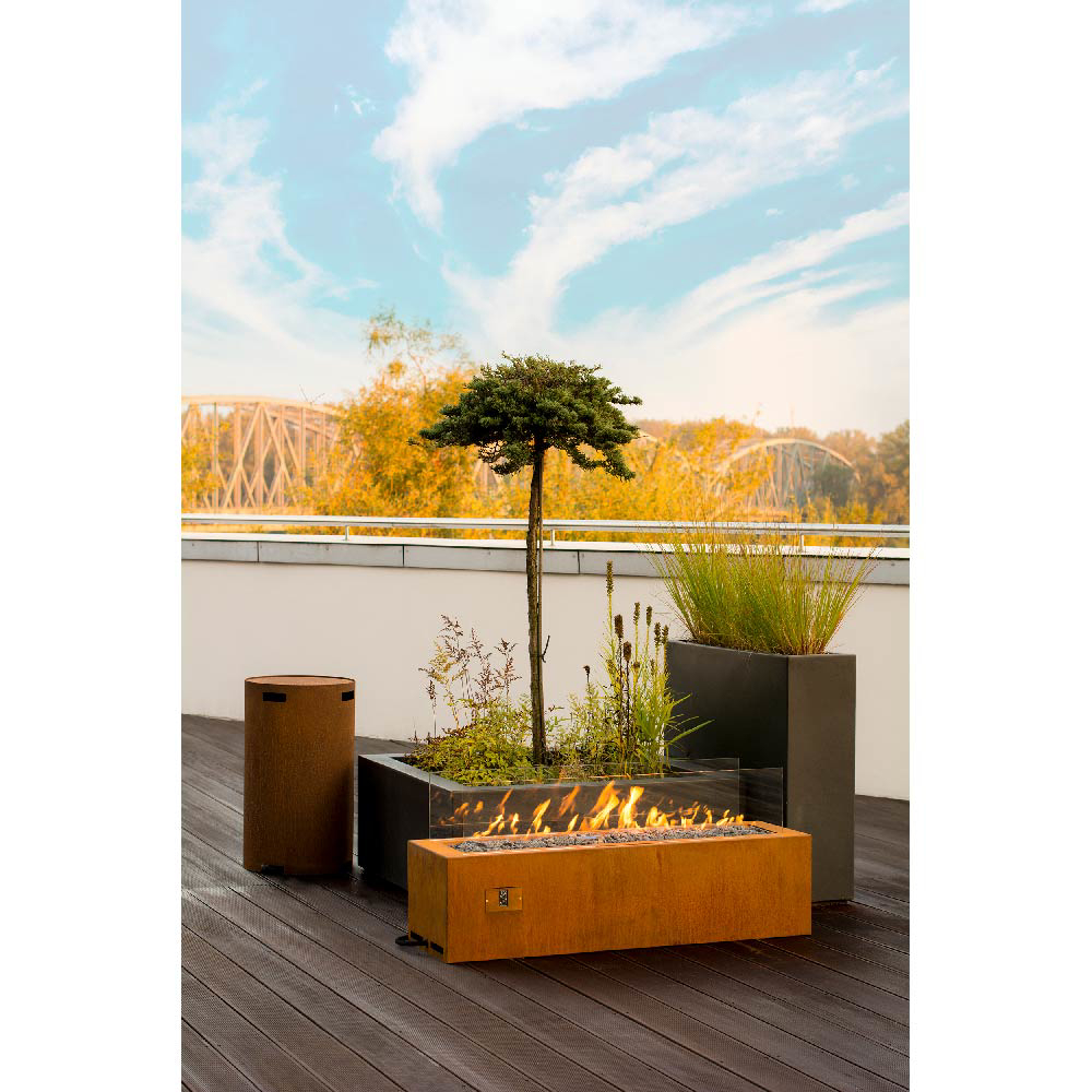 Galio Corten is an outdoor fireplace with two fuel options – LPG or Natural Gas. This solution allows for even greater customization to meet your needs.