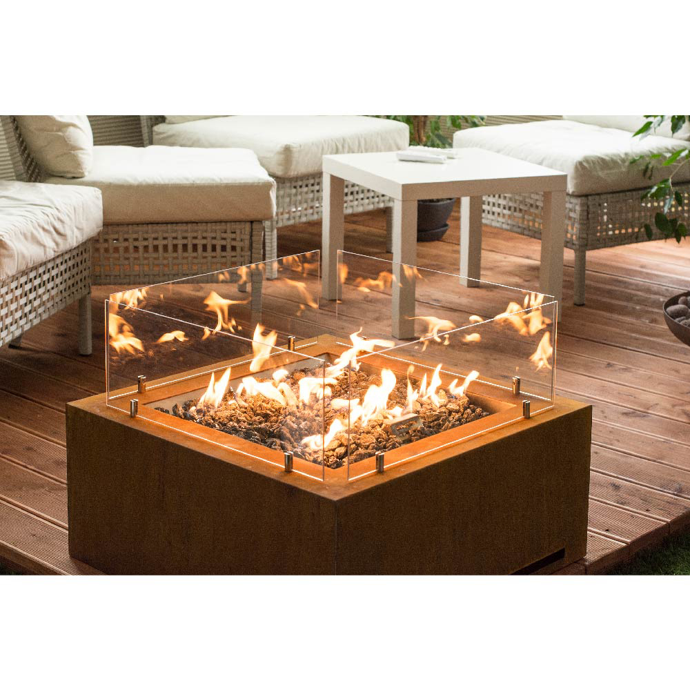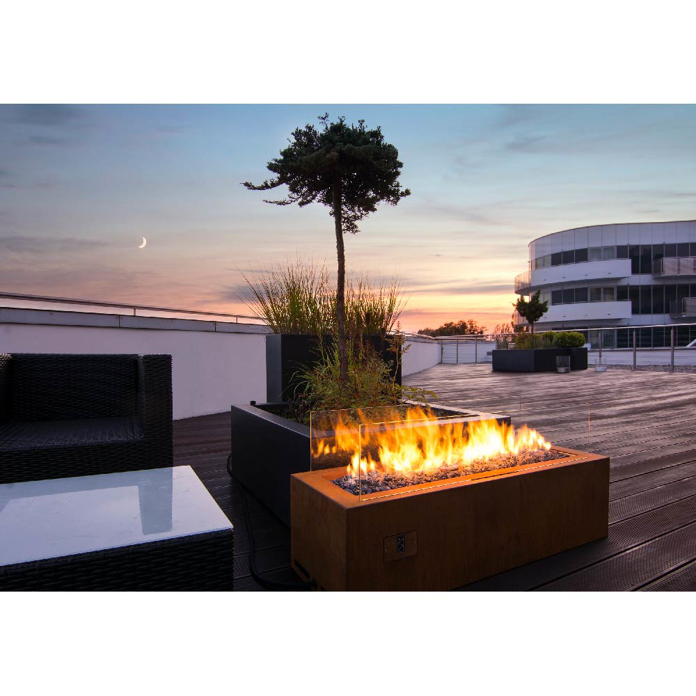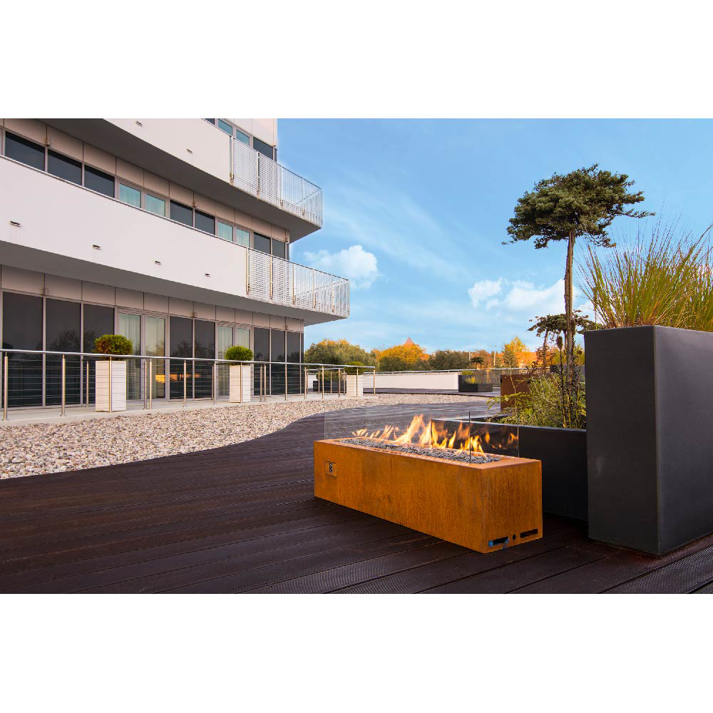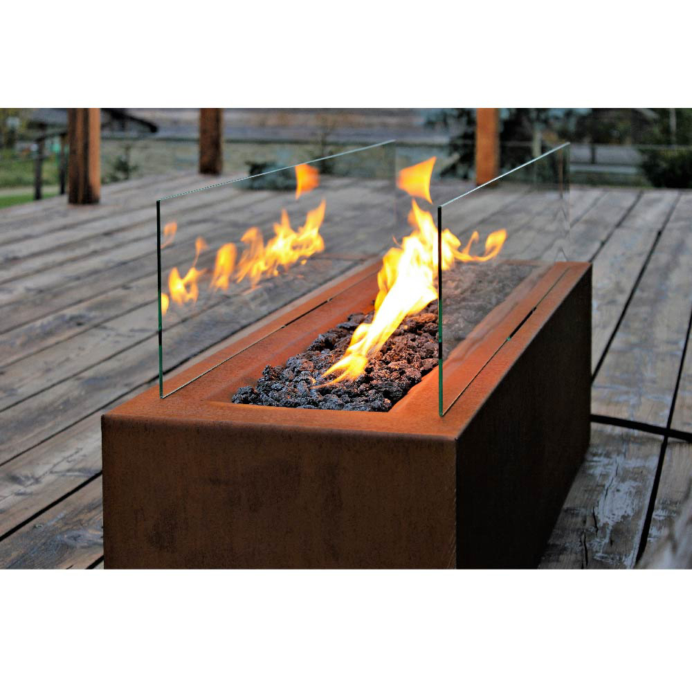 Galio Corten is an outdoor fireplace with two fuel options – LPG or Natural Gas. This solution allows for even greater customization to meet your needs.