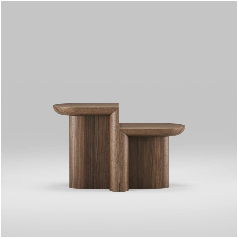 The design masterfully merges strict, geometric elements with soft, sweeping curves, striking a balance between structure and fluidity. This fusion imbues each piece with an undeniable charm, creating a captivating visual dialogue that sparks curiosity and invites closer inspection. The minimalist approach emphasizes both simplicity and functionality, while the unique blend of hard lines and gentle curves infuses the tables with a subtle yet powerful presence.