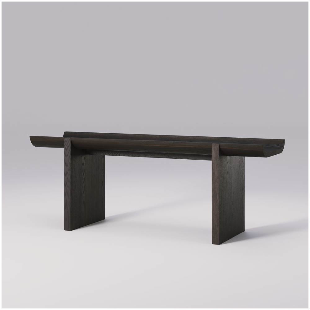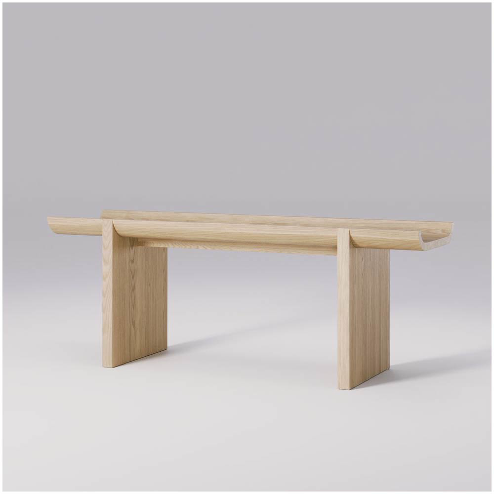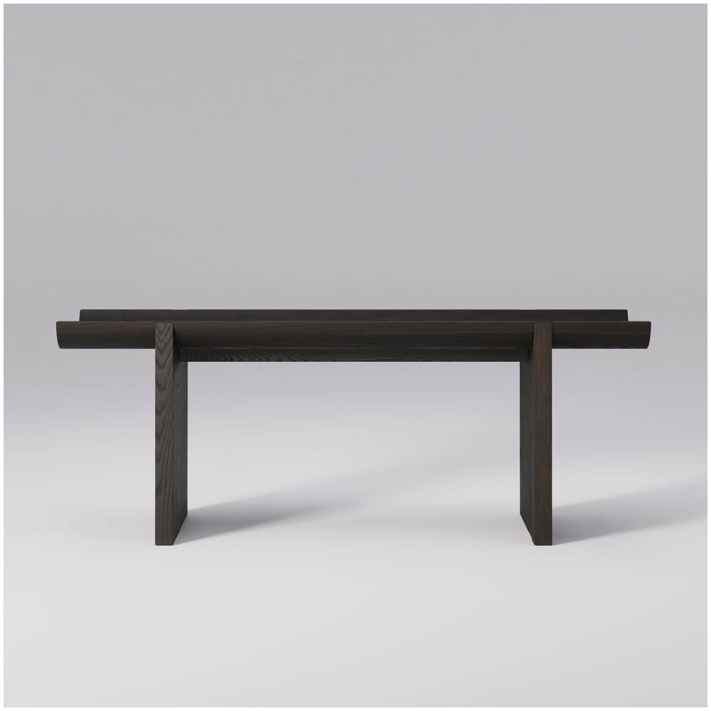 The solid oak construction ensures durability, while the natural texture and finish of the wood add warmth and character, providing a perfect contrast to the rugged, architectural inspiration behind the design.