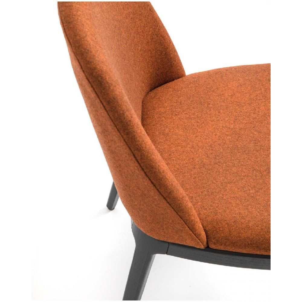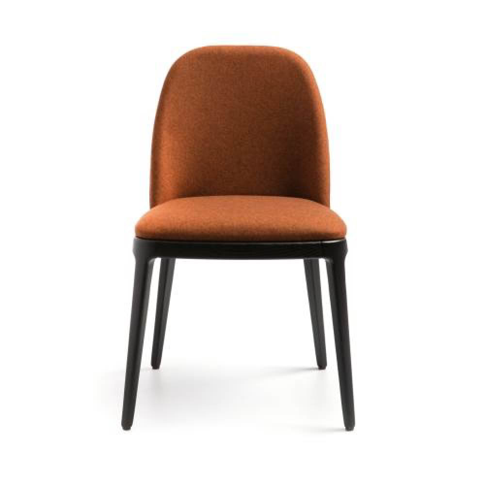 Ash wood structure, backrest and seat in curved plywood with expanded polyurethane foam, upholstered with fabric.