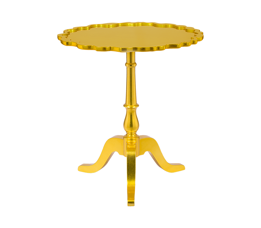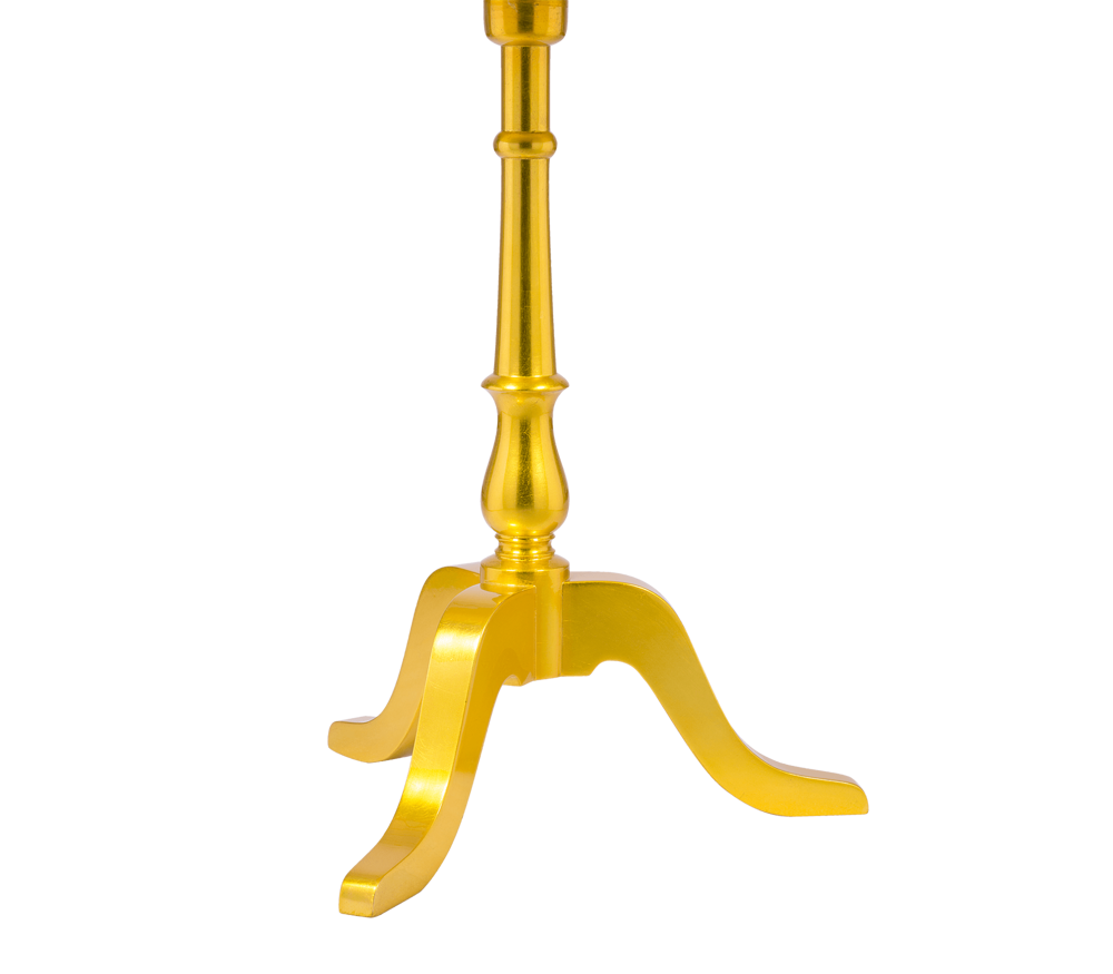 Table in wood, with a twisted column ending on tripod feet. Delicately carved and covered entirely with silver leaf colored in citrine.