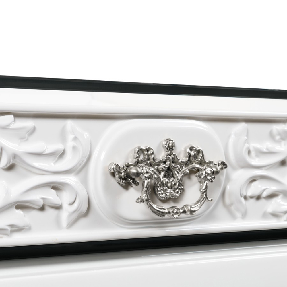 Glass cleaner for the glass and dry cloth for the lacquered part and the drawers.