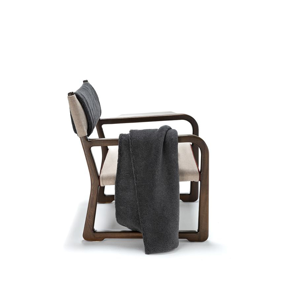 The fabric bears the signature and unmistakable taste of Loro Piana, an absolute leader in the home textile industry and worldwide style icon. From the meeting of these two worlds comes the delicacy of the textile parts, pleasant to the eye and to the touch, which complete the delicacy of the wood.
