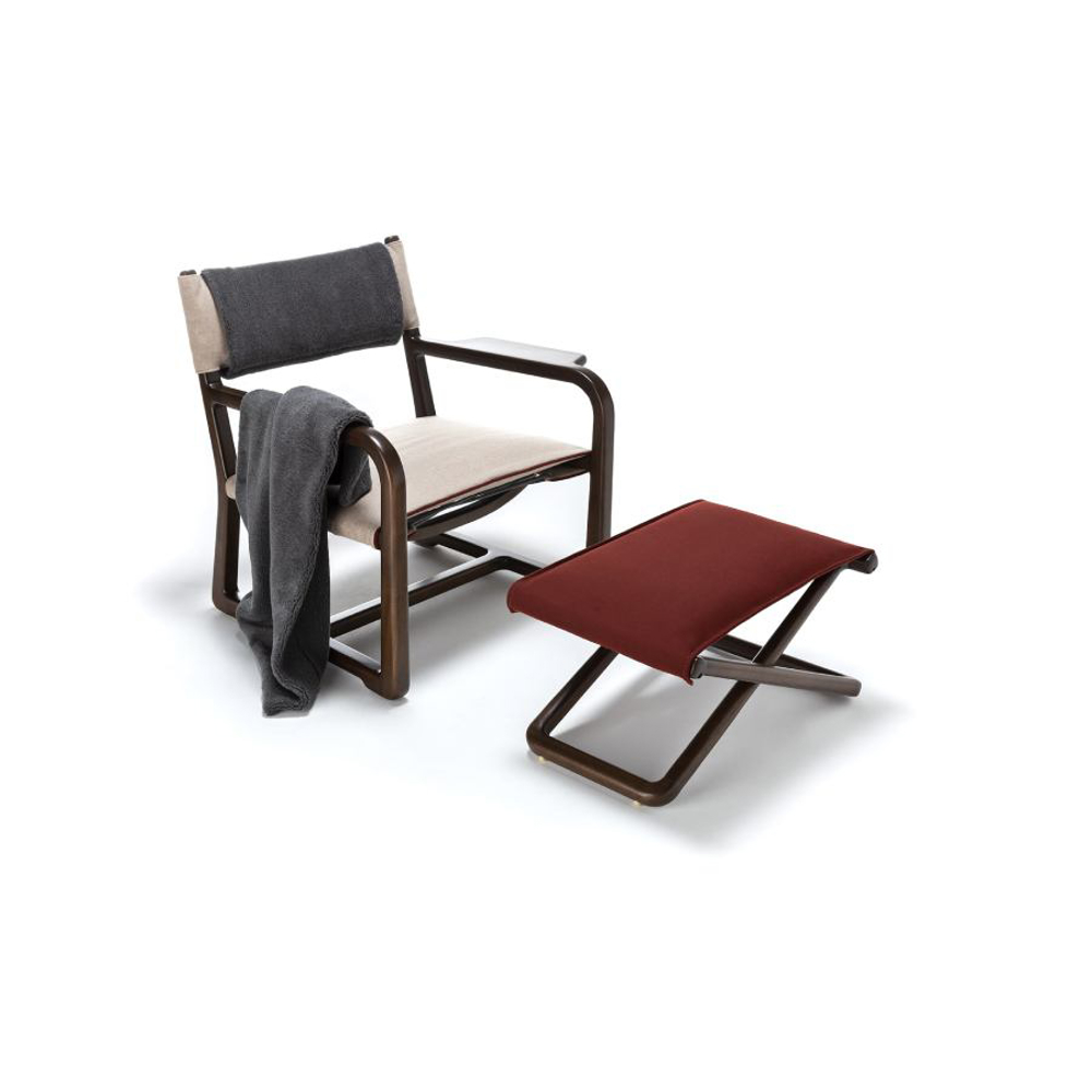 St. Moritz - Armchair is an auteur piece with sinuous lines and a retro look. The Delight Chairs St. Moritz are not just an exclusive, very refined interpretation of the classic director’s chair: they are genuine design pieces that spring from the shared values and vision of Loro Piana Interiors, Exteta and Paola Navone with her Studio Otto.