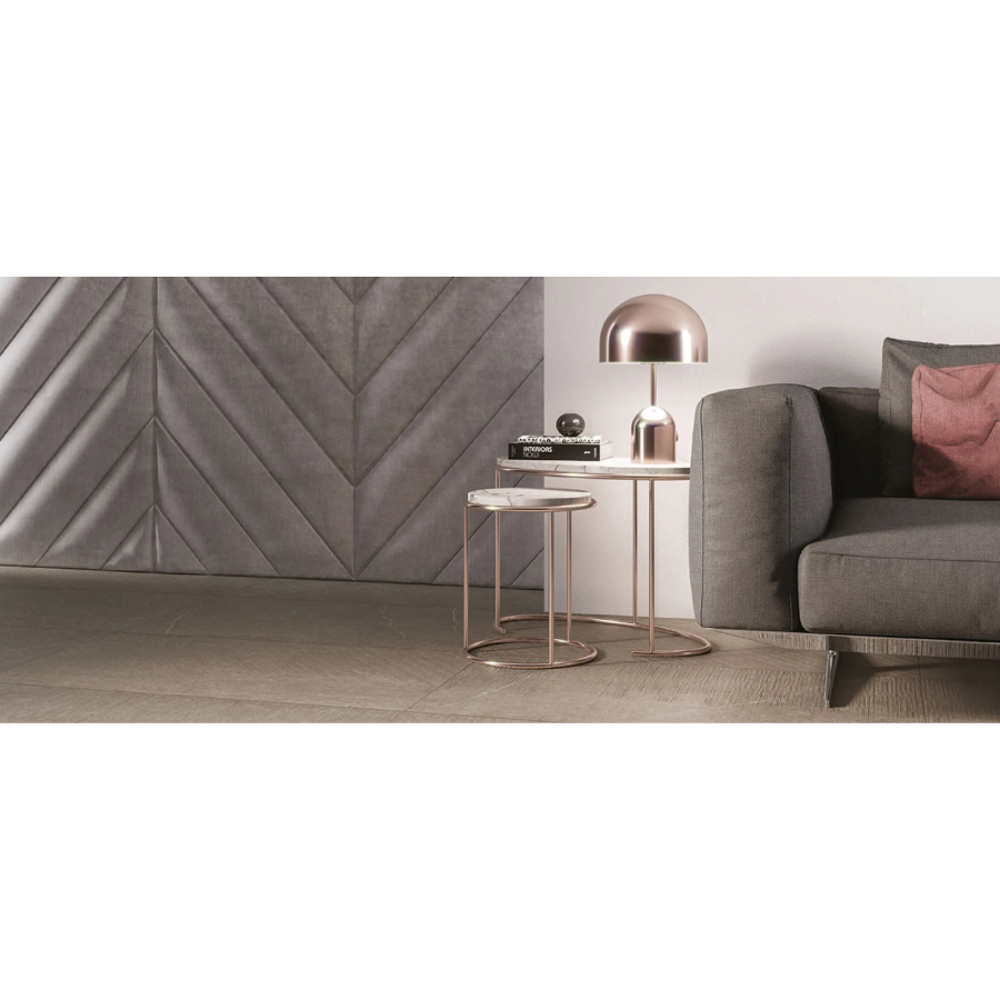 This stone-effect porcelain stoneware is the perfect solution for creating continuity throughout the home—seamlessly connecting living areas, hallways, and sleeping spaces with a calm and harmonious aesthetic.