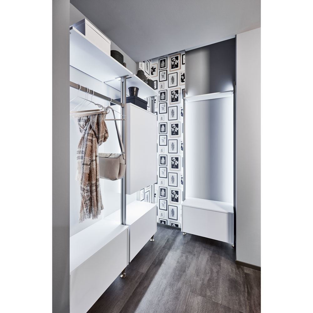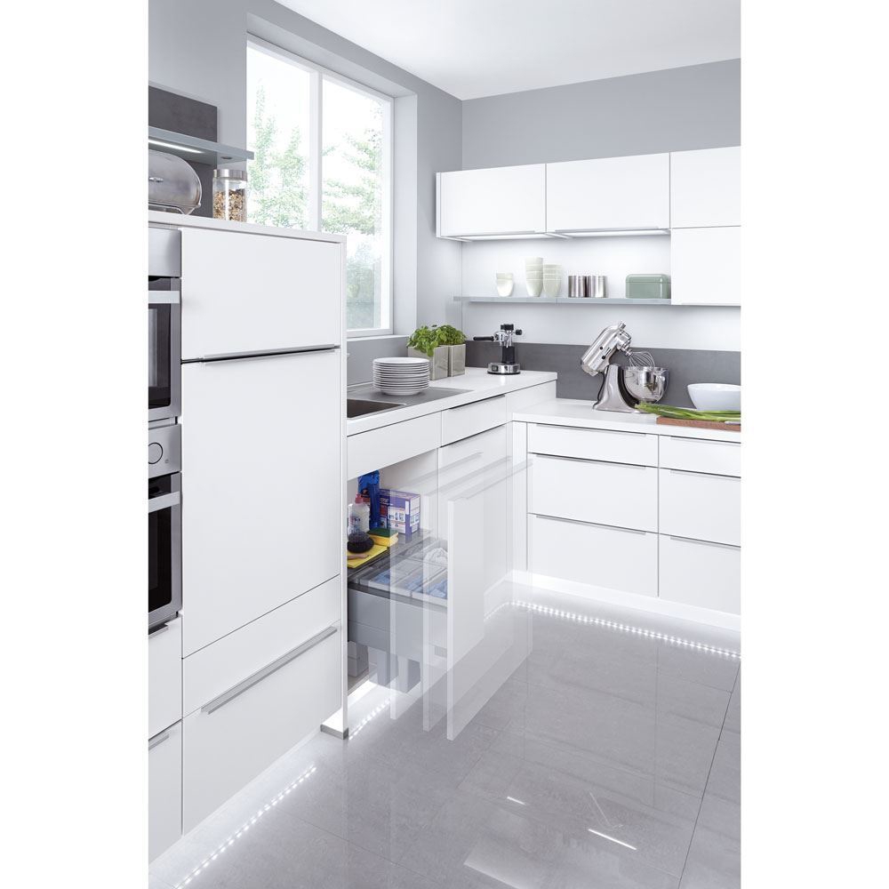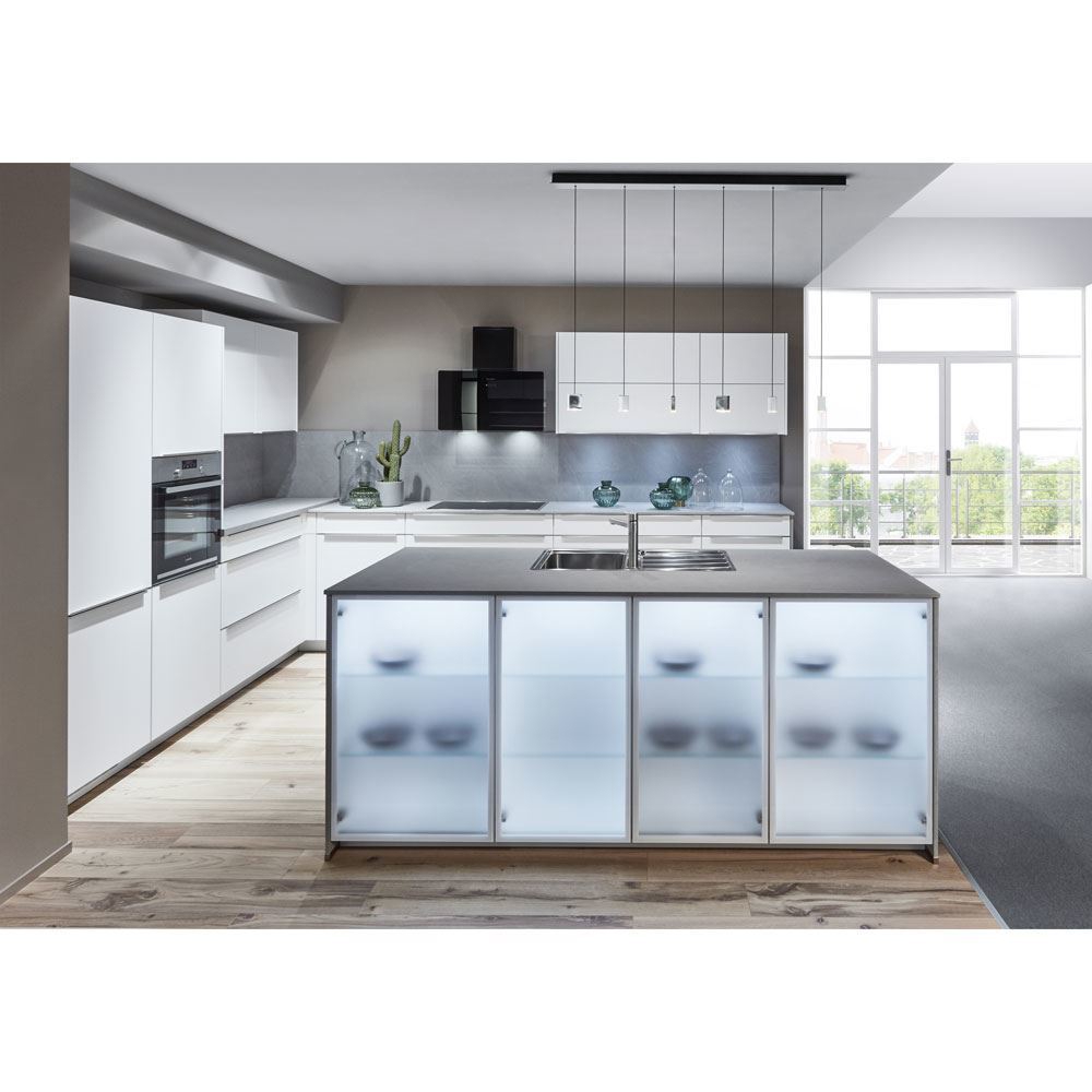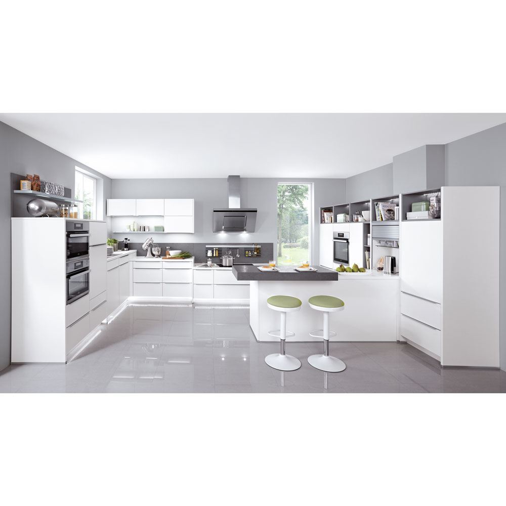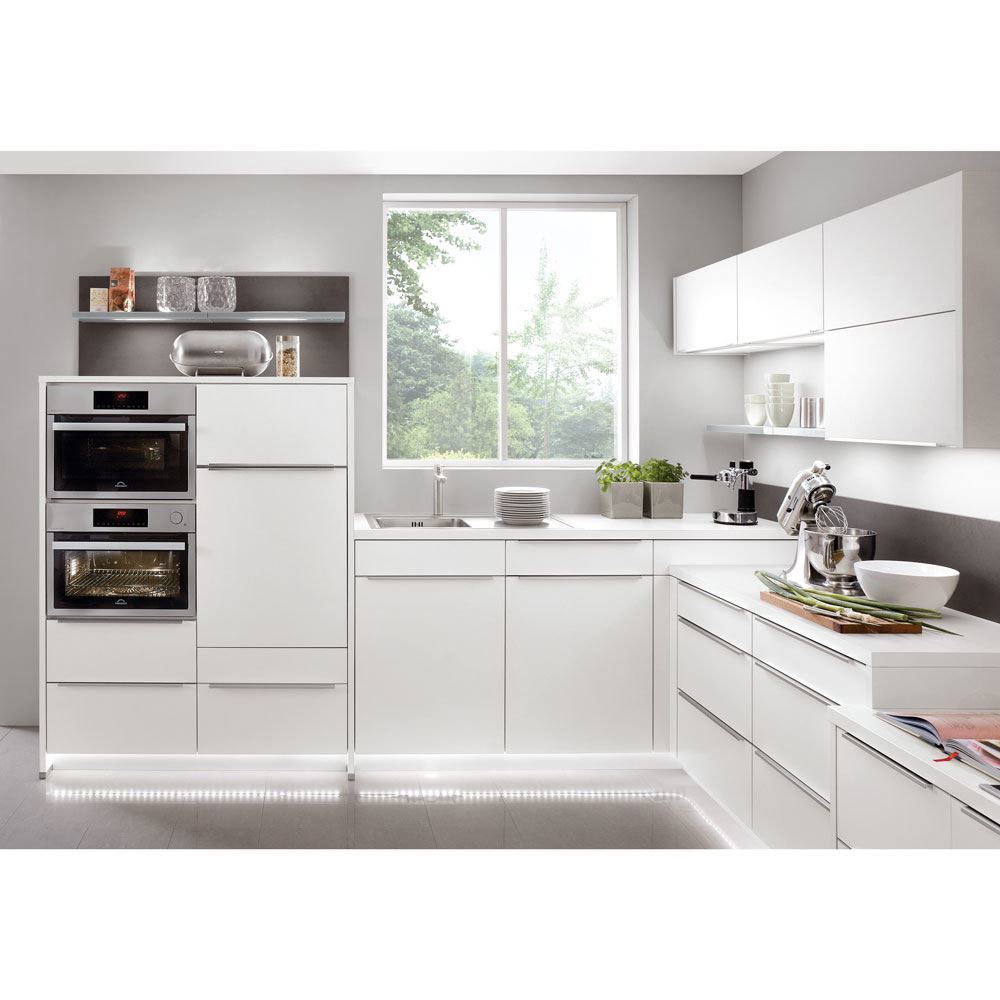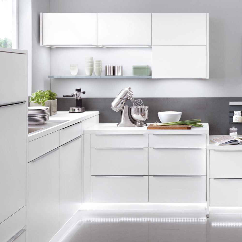Small but beautiful. A dazzling White kitchen makes even the smallest room appear spacious and adds a sizable feel-good factor. The raised appliances are modern – and with their Stainless steel appearance – a real eye-catcher.