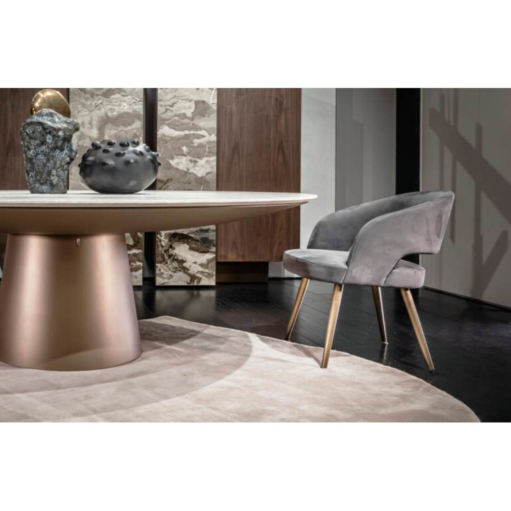 Thalis is an armchair characterized by a comfortable and pleasantly enveloping seat. The refinement of its shapes comes from a magnificent combination between the welcoming lines of the seat and the rigorous and ethereal metal legs that make it a timeless object.