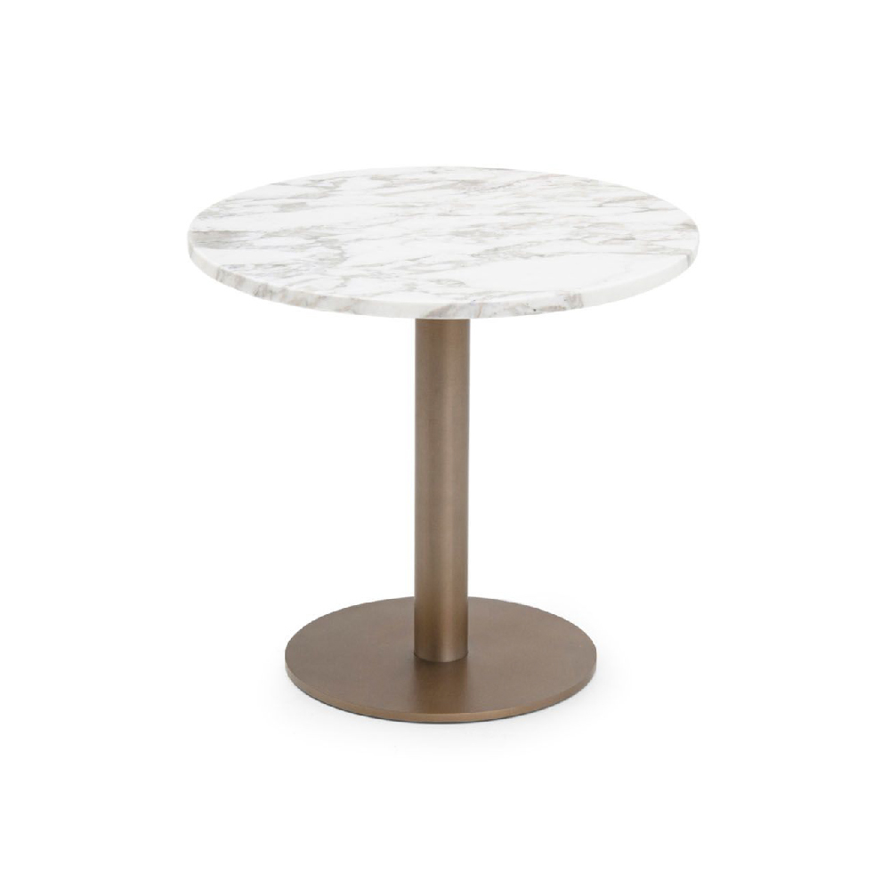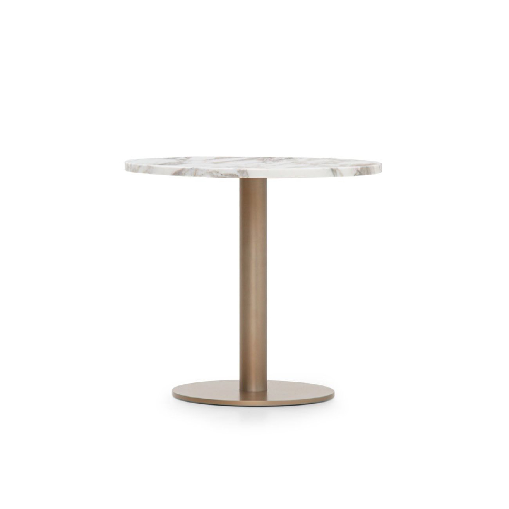 Top in marble Carrara, Base in metal col. Light Gold satin finish