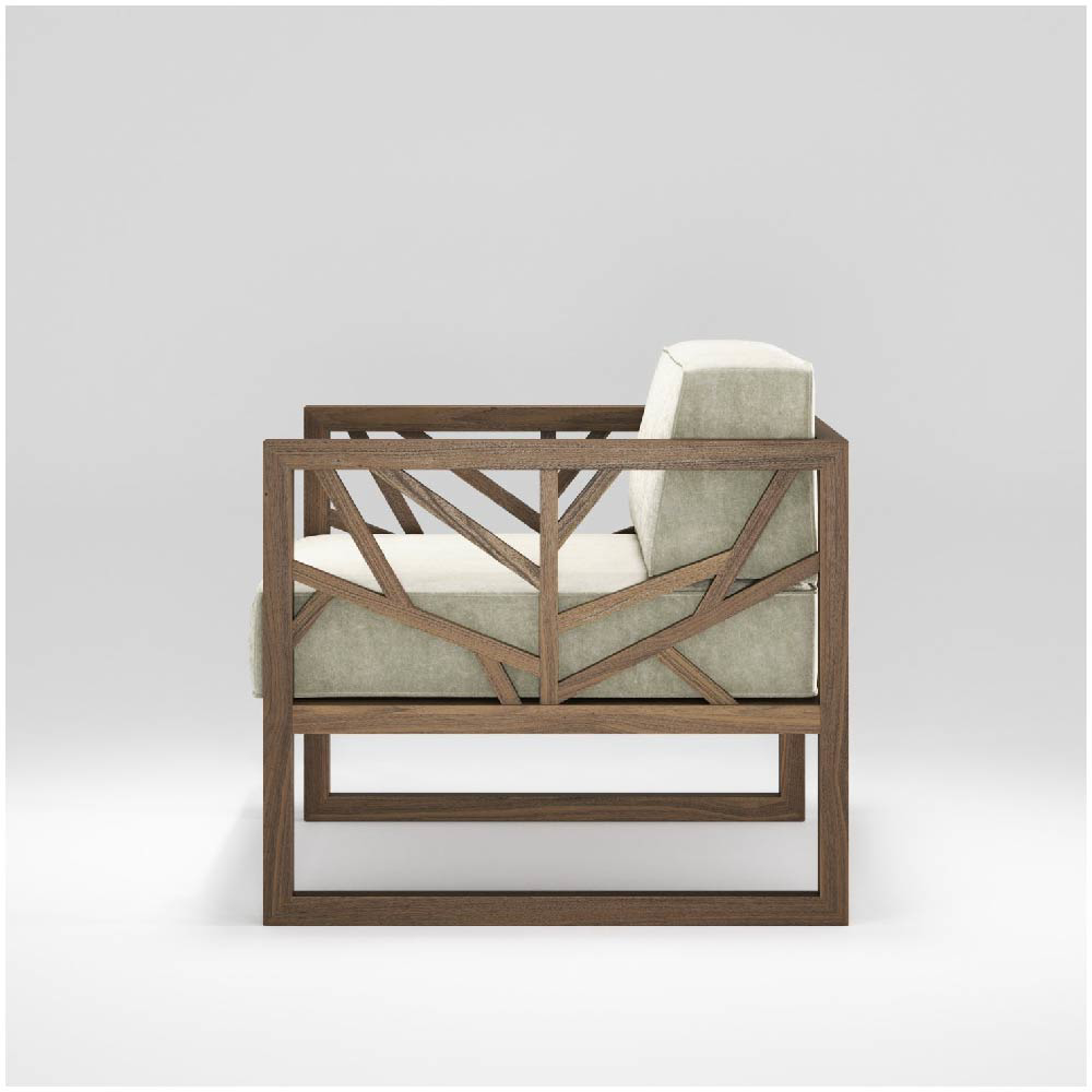 Beyond its beauty, Tree is designed for comfort. Its proportions, combined with a carefully contoured backrest and seat, offer a relaxing seating experience perfect for unwinding. The addition of two separate cushions, designed to complement the chair’s frame, provides extra comfort and flexibility, allowing you to adjust for personal preference. Whether placed in a living room, lounge, or reading nook, Tree creates a natural sense of calm.