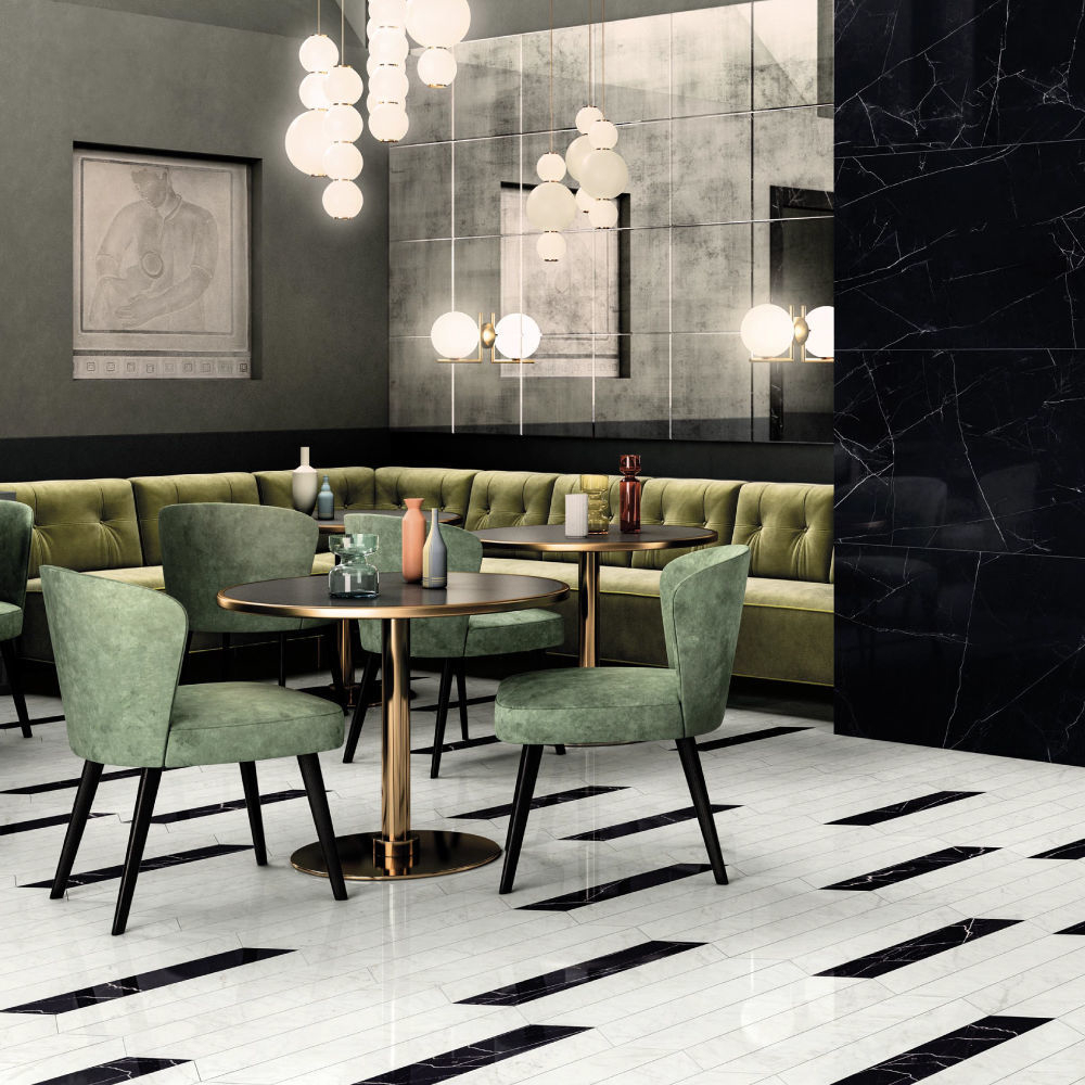 The new marble effect surfaces show off their wilder side, thanks to a stylish mixture of textures, decorations, and shades that develop all the positive elements of tradition to create an exclusive, contemporary look.