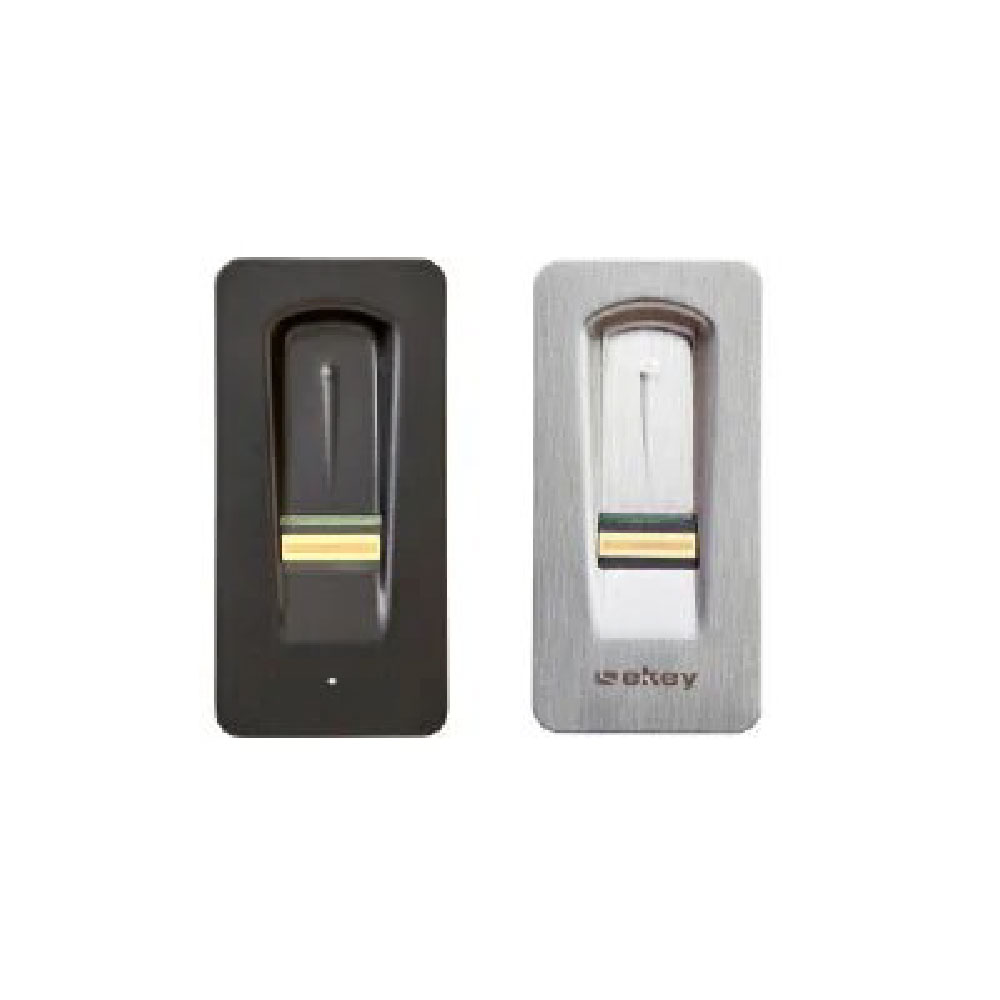 Fingerprint reader + Bluetooth EKEY Features: Fingerprint access control and optional opening via mobile application within the Bluetooth range. Simple administration of the user base by means of a mobile application. Temporary deactivation of selected users. Daily input function activated via an application (recommended door closer). Adjustable reader backlight. Faced with the panel surface. Memory for 99 fingers. Dimensions: 25×52 mm. |