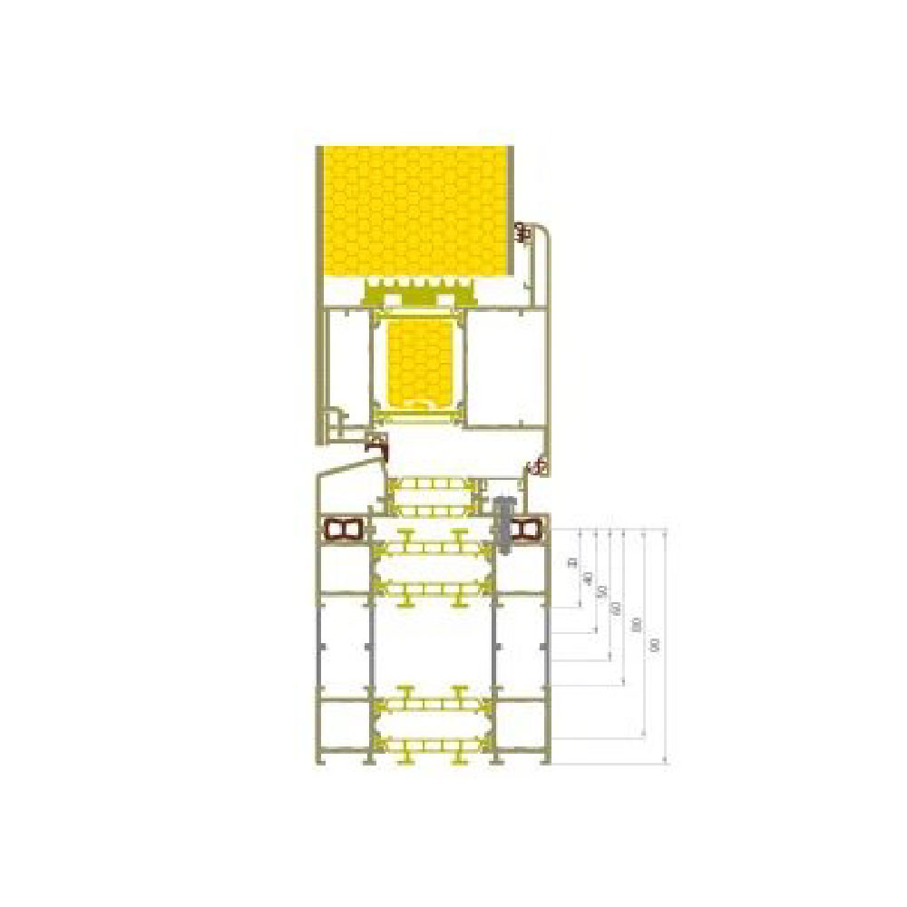 3-chamber sections with a depth of: 3,54 inch (window and door frame, door leaf), 3,89 inch (window sash)