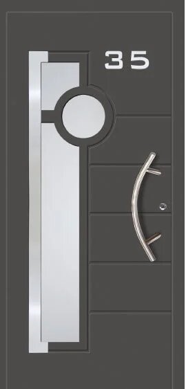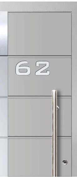 House numbers enhance the appearance of the door while also serving a practical purpose. They are embedded in the surface of the panel and faced with aluminum sheet.