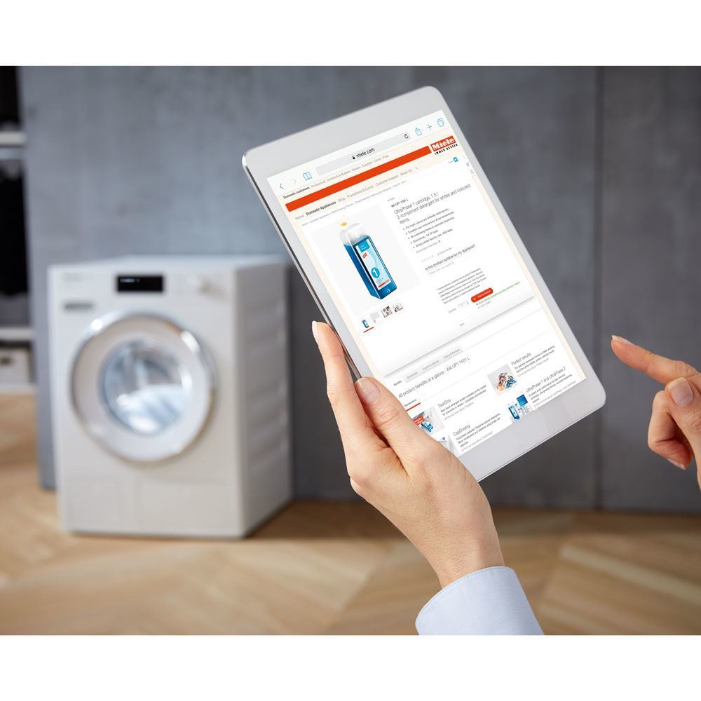 Miele provides the best detergent system at the touch of a button, which allows washing more thoroughly and cleaner than conventional liquid detergents that do not contain bleaching agents.